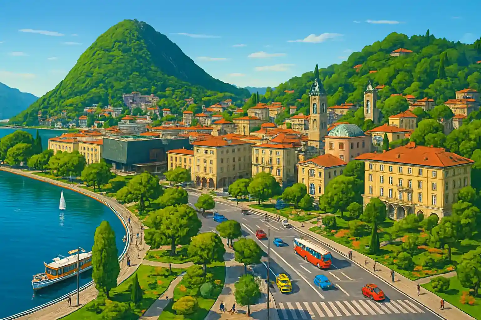 Hur långt är det från Lugano-Paradiso till Lugano centrum? Paradiso ligger ca 2 km söder om Lugano centrum, vilket tar 5–10 minuter med bil beroende på trafik.