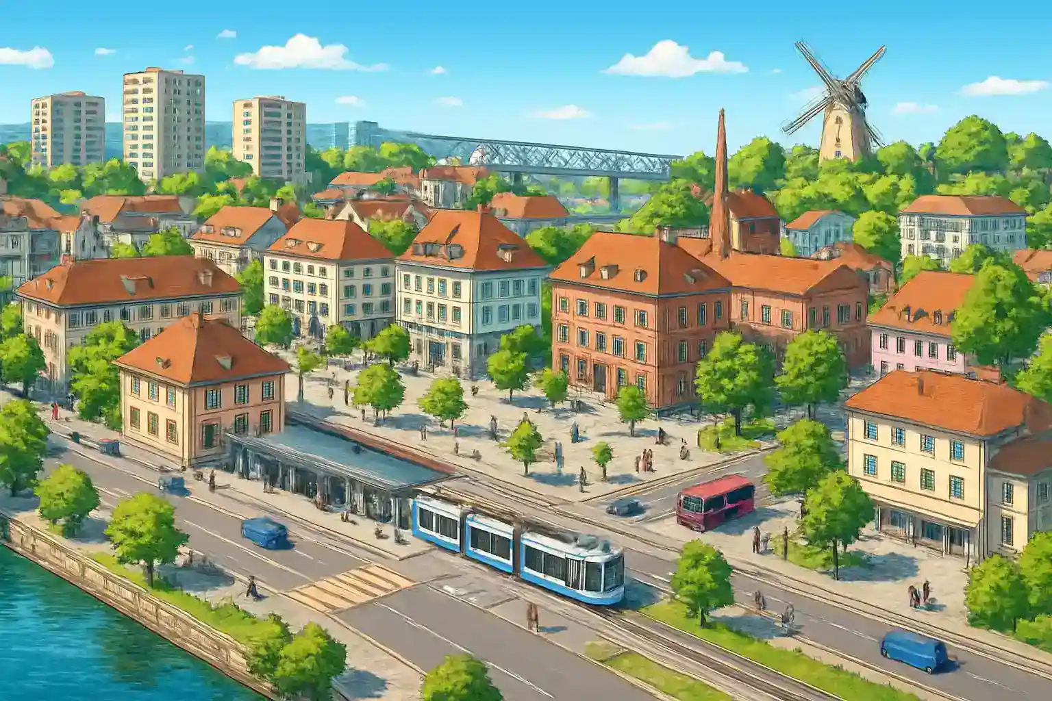 Schlieren är en tätbefolkad industristad med 20 000 invånare i Limmatdalen, känd för sin omvandling från industriort till modernt innovationscentrum med Life Sciences-kluster. Stadens läge direkt längs Limmat och Zürichs spårvagnslinje 17 gör det enkelt att pendla in till Zürich utan bil, medan hyrbilen används för regionala utflykter. Kör 20 km västerut till Baden för att besöka de romerska termalbaden och den pittoreska gamla stan med sin medeltida träbro.