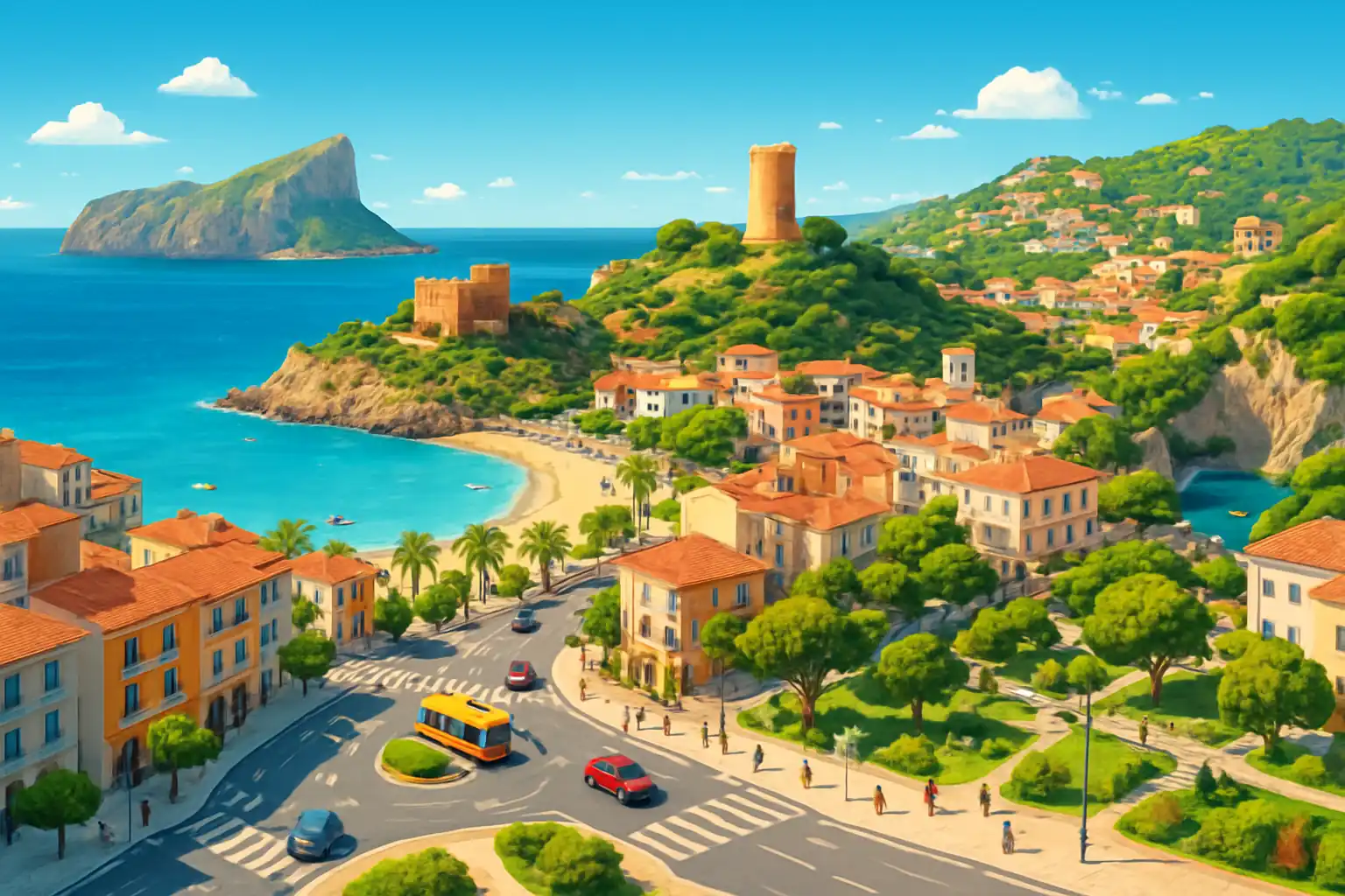 Det är ungefär 8 km söderut och tar ca 15 minuter via de slingriga bergsvägar som leder ner till kusten. Kan jag ta färjan till Ibiza från närheten av Cumbre del Sol? Ja, Dénia hamn med färjor till Ibiza och Formentera ligger 15 km norrut, ca 20 minuters körning.