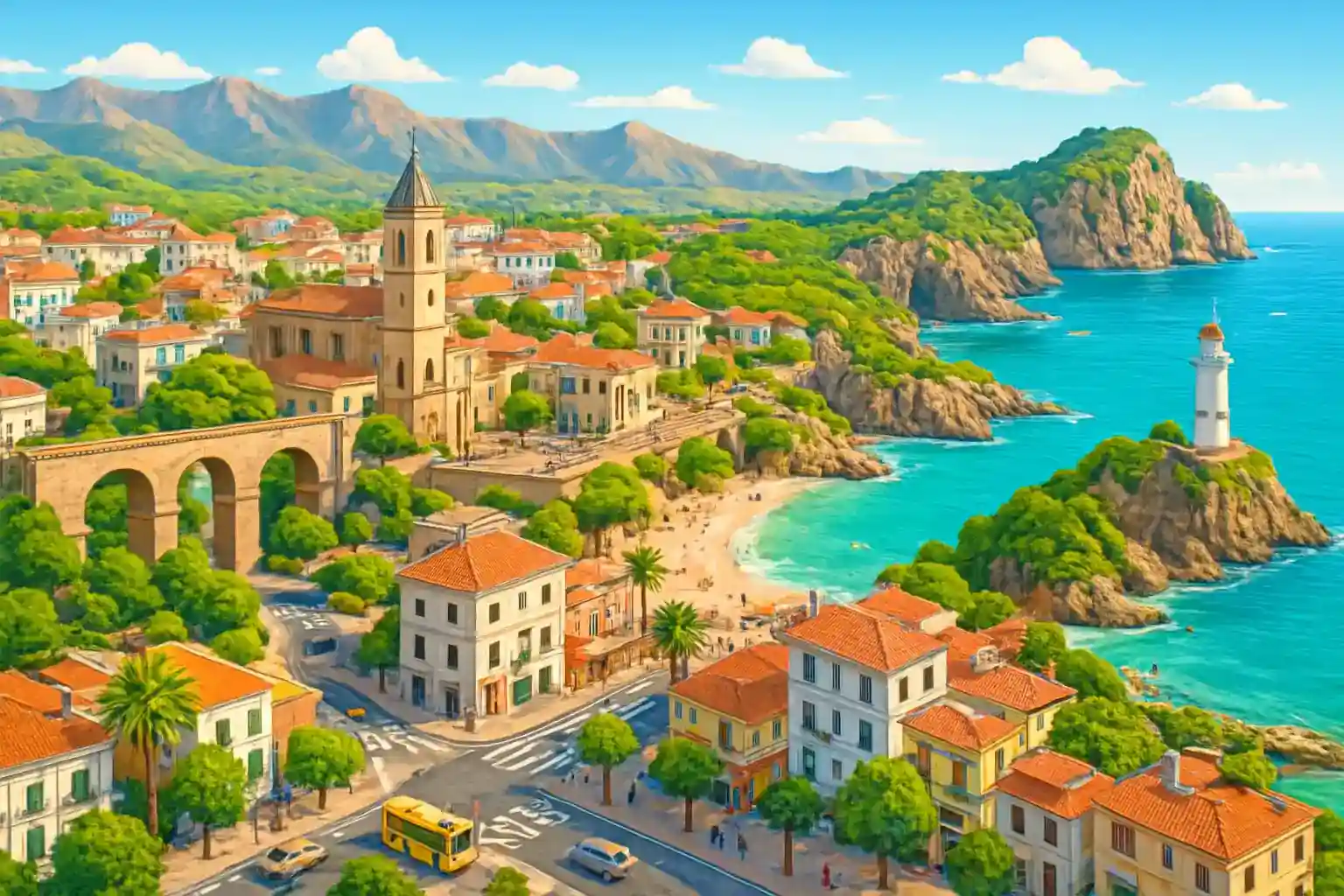 Kör västerut längs N-340 mot Almuñécar (30 km, 30 min) för en vacker kustväg med havsutsikt. Undvik att köra in i Nerjas gamla stadskärna under högsäsong – parkera vid infarterna. Hur långt är det från Nerja till Málaga flygplats?