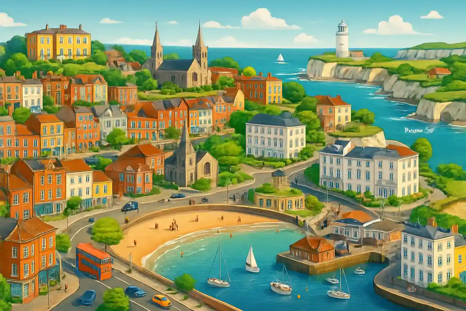Undvik trafik på A255 under sommarveckoslut när turister strömmar till stränderna. Hur långt är det från Broadstairs till Dover? Cirka 30 km söderut via A256 och A2, ungefär 35–40 minuters körning.