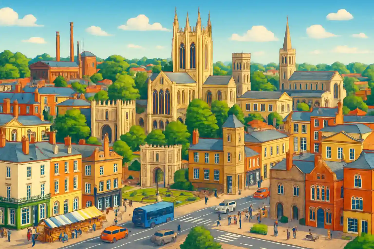 Undvik A14 mot Cambridge under fredag eftermiddag. Hur långt är det från Bury St Edmunds till Norfolk Broads? Ungefär 100 km norrut via A11 och A47 till Norwich, sedan 20 km till Broads – totalt ca 1 timme 30 minuter.