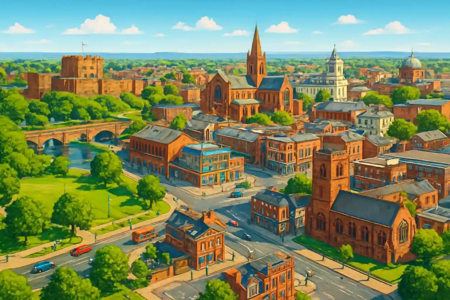 Carlisle är en historisk gränsstad med en imponerande borg och katedral i hjärtat. Med hyrbil är det enkelt att köra till Hadrians mur vid Birdoswald på 25 km österut via B6318, eller till Gretna Green på 15 km norrut – känt för sina bröllop. M6 söderut mot Lake District kan vara trång under brittiska skollov – planera resan tidigt på morgonen.