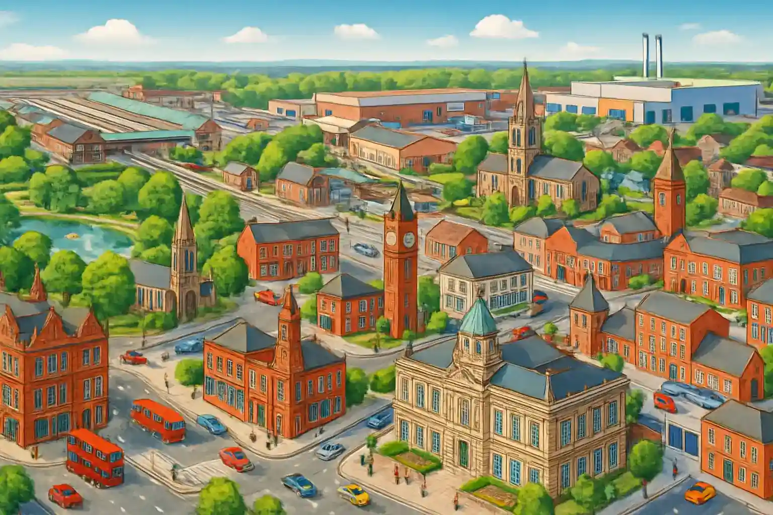Stadens centrum har Queens Park, ett vackert viktorianiskt park, och flera historiska byggnader från järnvägsepoken. Besök Jodrell Bank Observatory, bara 20 km norrut via A535 – ett UNESCO-världsarv med imponerande radioteleskop. Kör 30 km västerut till Chester och dess unika romerska stadsmurar.