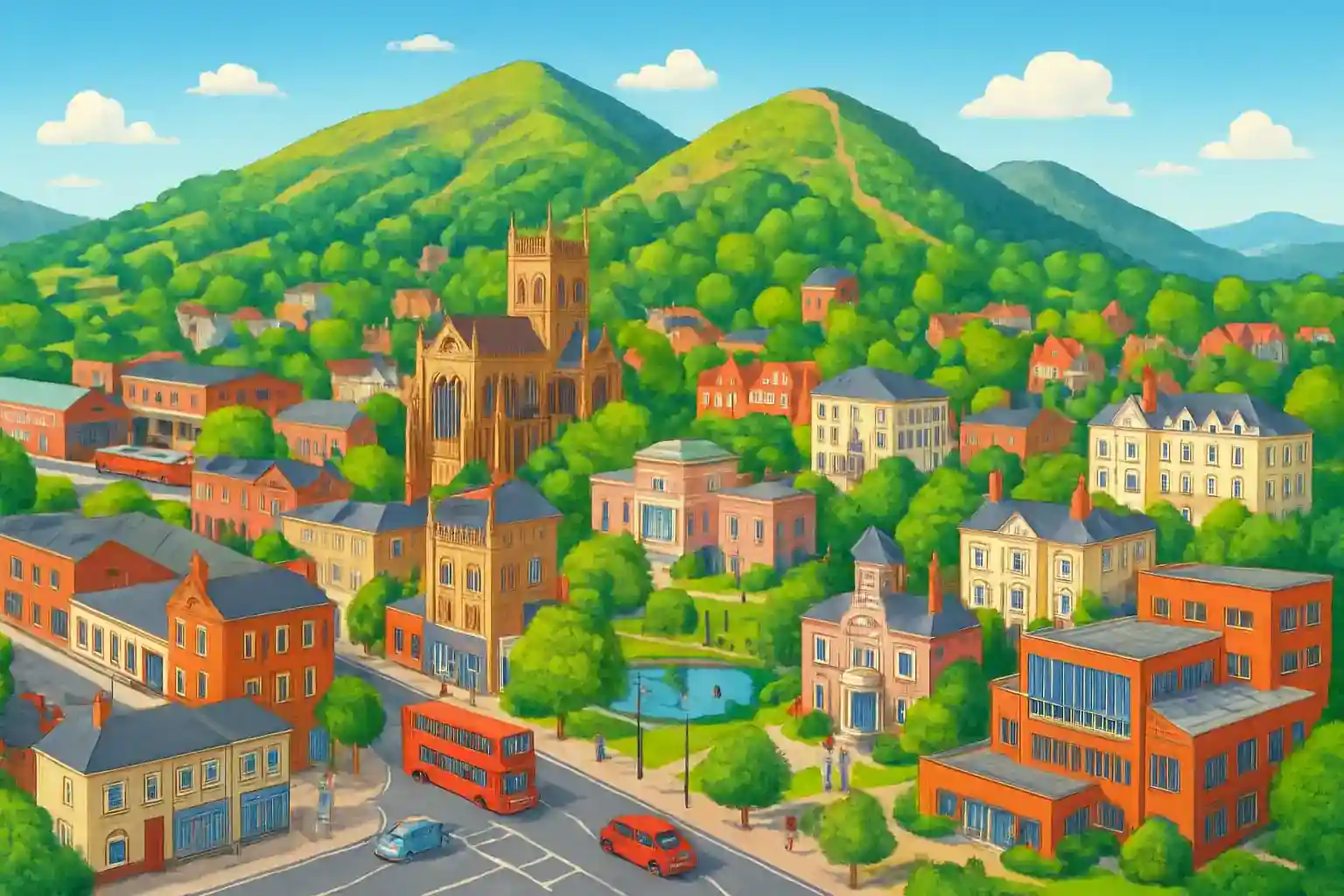 Hyr bil i Malvern centrum och utforska Worcestershire och Malvern Hills med en lokal uthyrare. Great Malvern är känt för sitt mineralvatten och dramatiska kullandskap, och med hyrbil når du enkelt omgivande sevärdheter. M5 nås på 15 minuter för snabb körning mot Worcester eller Cheltenham.