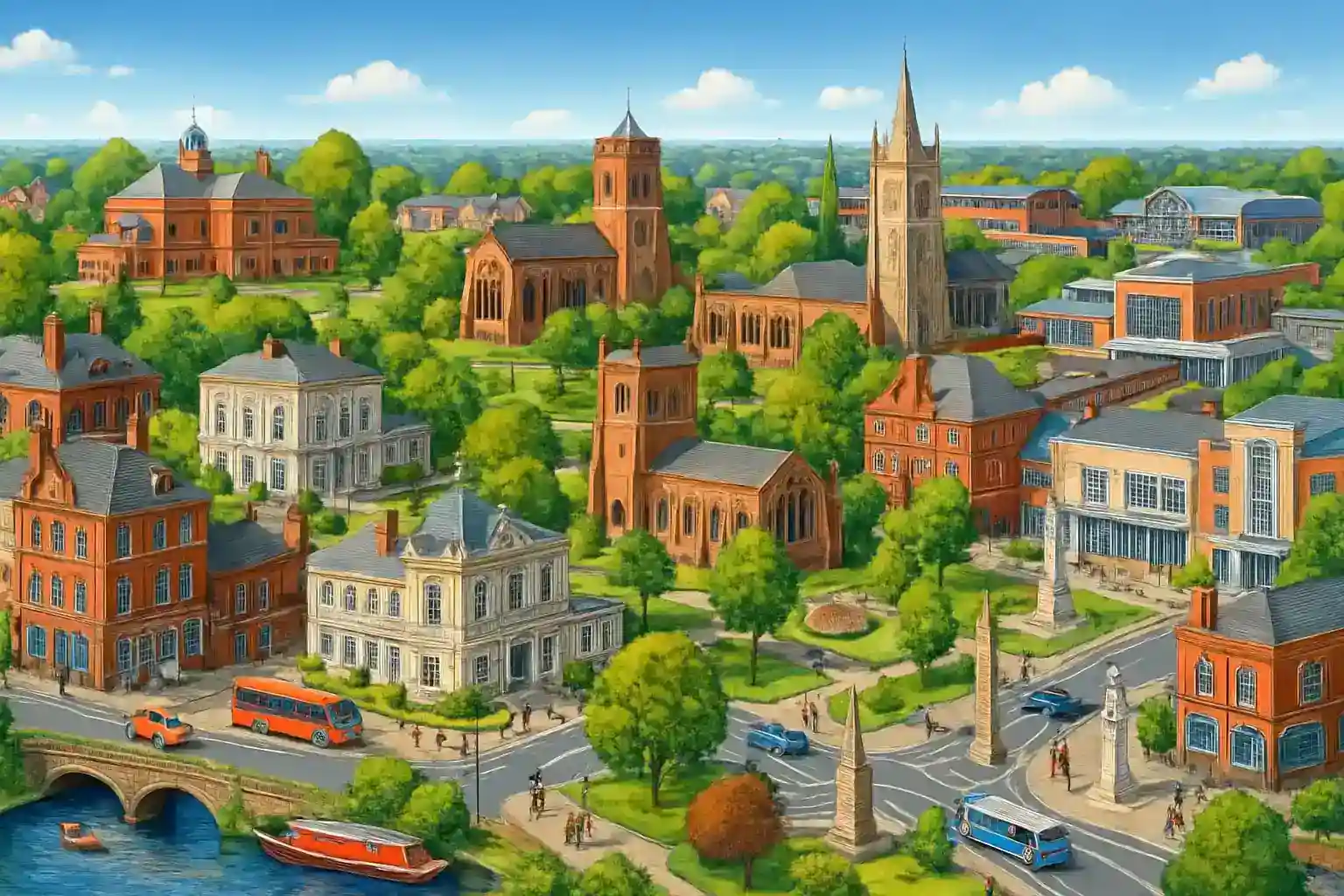 Nuneaton centrum i Warwickshire ligger mitt i England, bara 18 km norr om Coventry och 35 km öster om Birmingham. Hyrbil här ger dig snabb tillgång till M6 och M69, perfekt för resor genom centrala England. Nuneaton är känd som födelseort för författaren George Eliot och har ett levande stadskärna med shoppinggator och marknader.