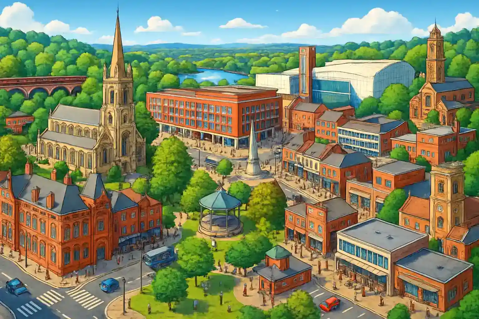 Hyr bil i Redditch centrum och utforska Worcestershire och West Midlands med en strategisk utgångspunkt. Redditch ligger 25 km söder om Birmingham och 20 km söder om Solihull via A435. Med hyrbil når du Stratford-upon-Avon på bara 25 km söderut.