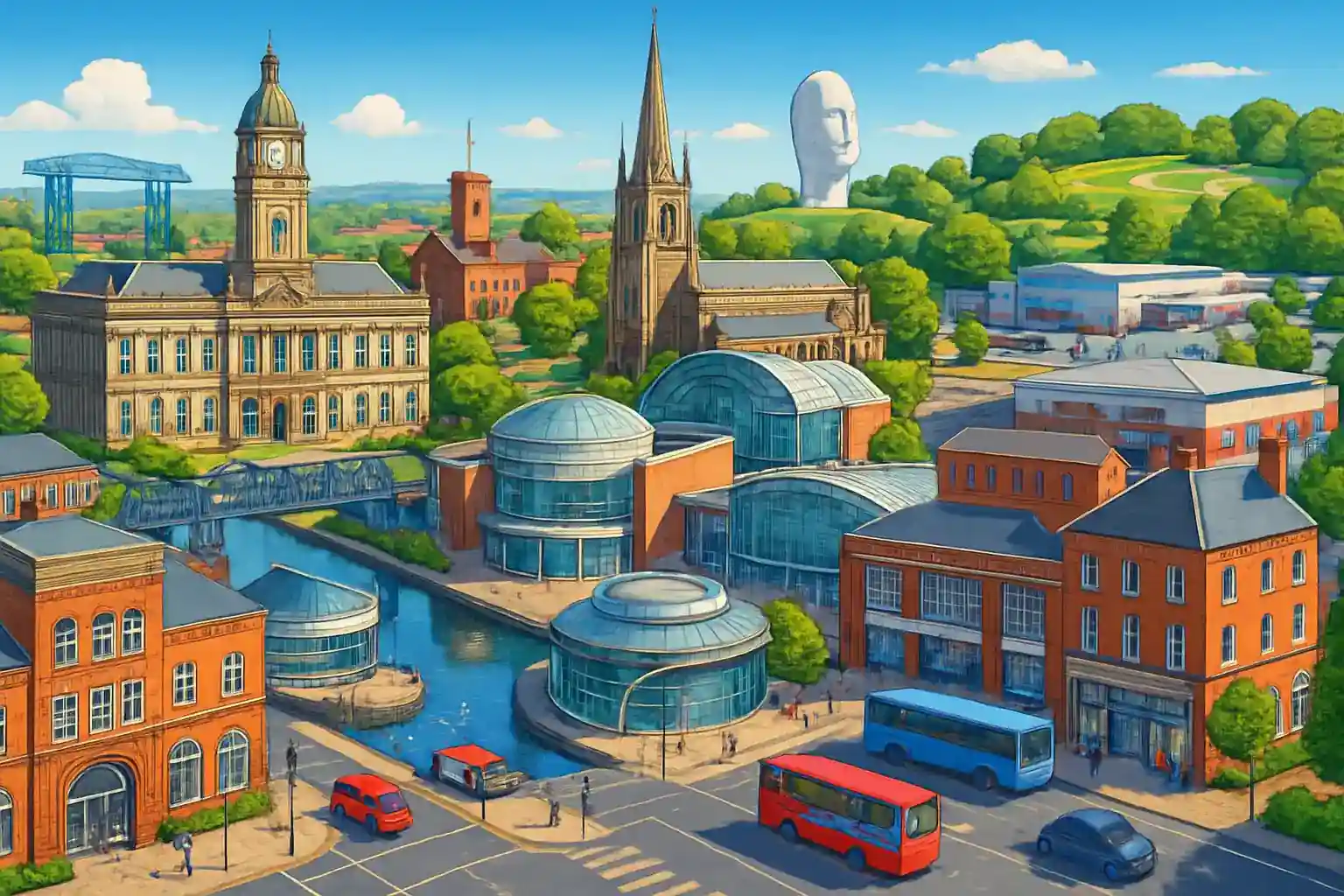 Hyr bil i Saint Helens och utforska denna industrihistoriska stad i Merseyside med enkel tillgång till hela nordvästra England. Liverpool ligger bara 19 km västerut (ca 25 min via A570) och Manchester 40 km österut (ca 40 min via M62). Med hyrbil kan du smidigt pendla mellan de två storstäderna.
