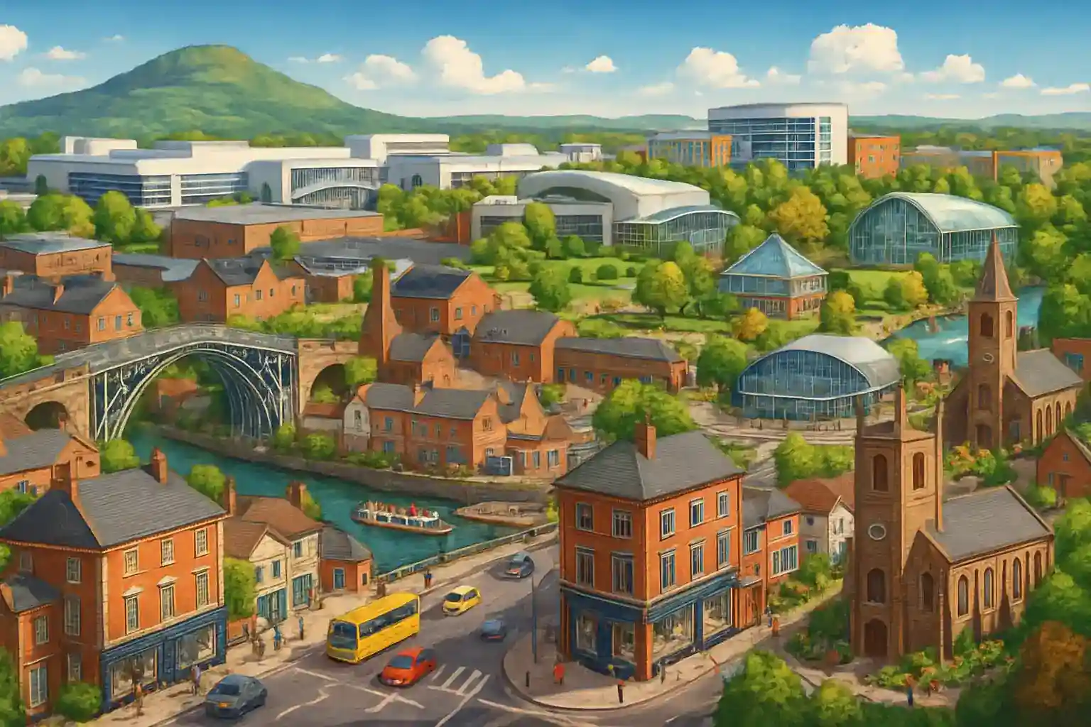 Ironbridge ligger cirka 8 km sydost om Telford centrum, vilket tar ungefär 10 minuter med bil via A4169. Kan jag köra till Wales från Telford? Ja, den walesiska gränsen ligger bara 30 km västerut.