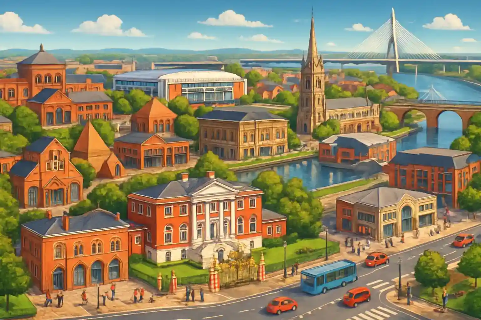 Hyr bil i Warrington centrum med tre uthyrare och utforska nordvästra England från ett strategiskt läge mitt mellan Manchester och Liverpool. Warrington ligger 25 km öster om Liverpool (ca 25 min via M62) och 28 km väster om Manchester (ca 30 min). M6, M62 och M56 möts nära staden, vilket gör det till ett utmärkt nav för regionala utflykter.