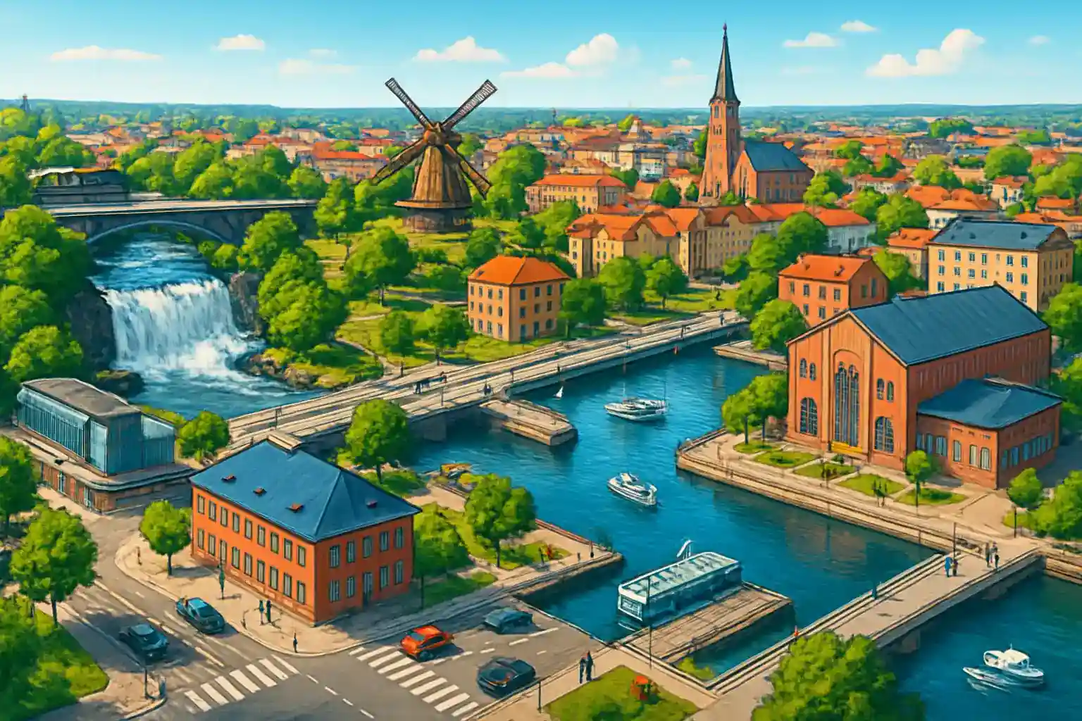 Hur långt är det från Trollhättan centrum till Göteborg? Det är cirka 80 km och tar ungefär 55 minuter via E45. Kan jag besöka Vänern från Trollhättan med hyrbil?