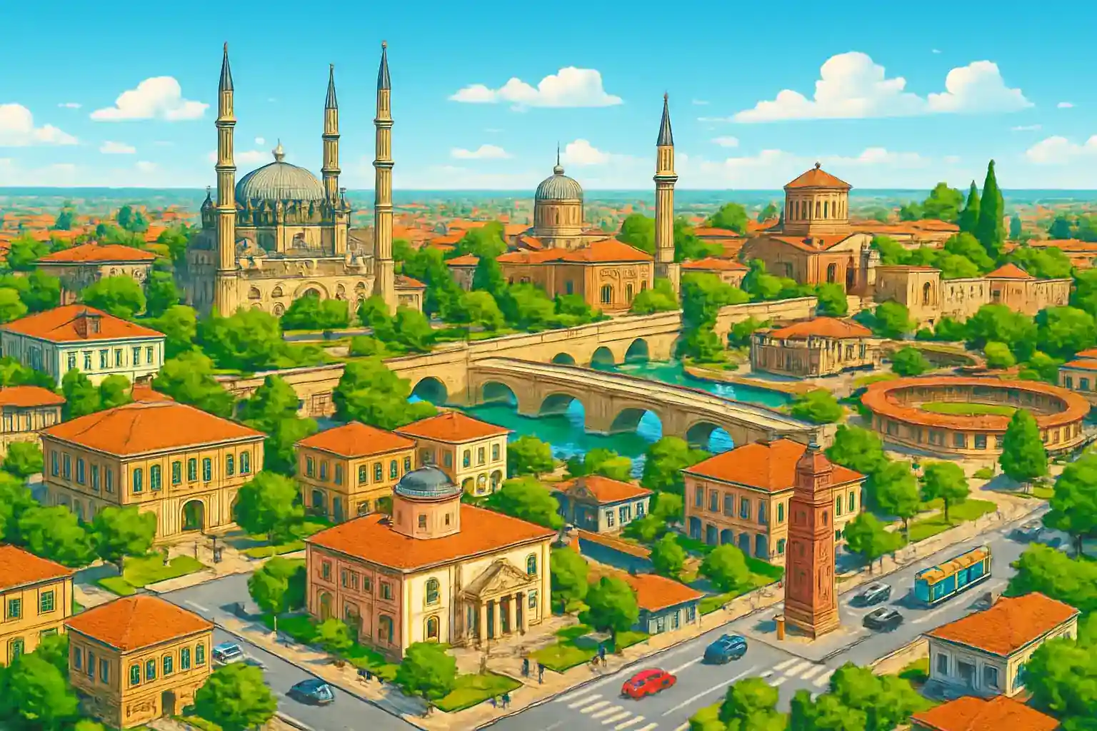 Hur långt är det från Edirne till Istanbul med bil? Cirka 235 km via E80, vilket tar ungefär 2,5 timmar under normala trafikförhållanden. Finns det hyrbilar tillgängliga i Edirne centrum?