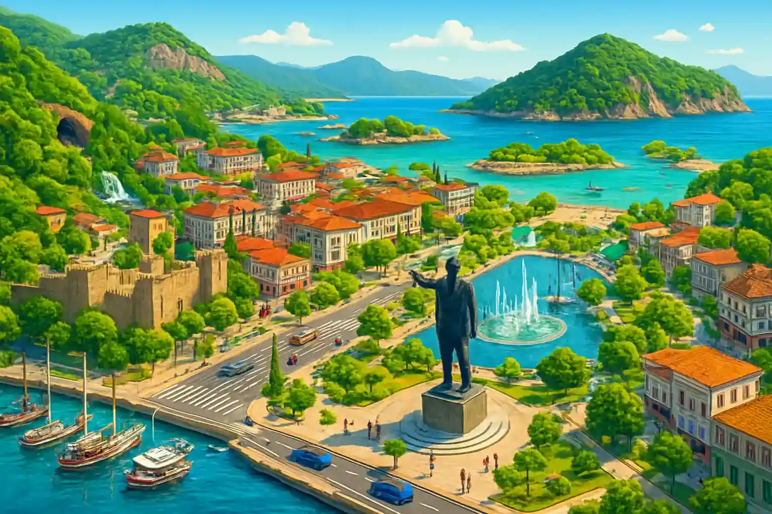 Ja, Bodrum ligger ca 95 km norrut och tar 1,5 timme – perfekt för en dagsutflykt. Finns det parkeringsmöjligheter i Marmaris centrum? Ja, det finns betalparkeringar längs hamnpromenaden och vid köpcentren, men under juli–augusti är det trångt – räkna med 10–15 minuters letande.