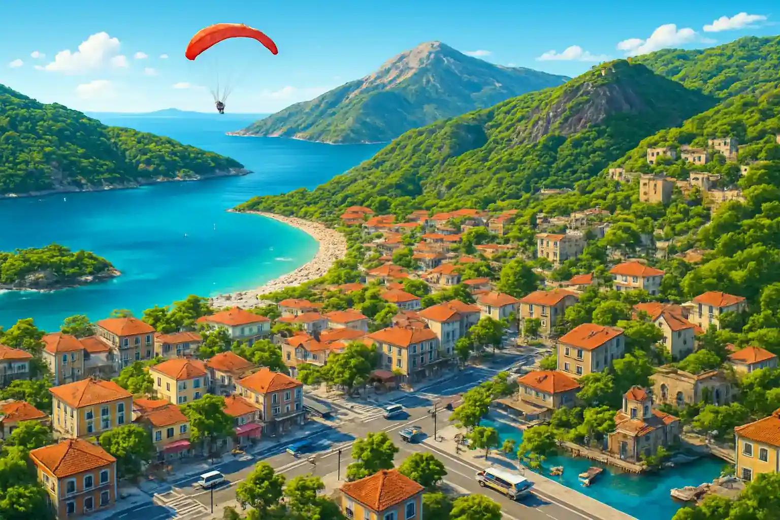 Ölüdeniz är en liten turistort vid foten av Babadağ-berget (1 969 m) och Fethiye ligger 15 km norrut (ca 20 min). Byn har en livlig strandpromenad med restauranger och butiker längs Belcekız-stranden. Paragliding från Babadağ är ortens signatursport med landning direkt på stranden.