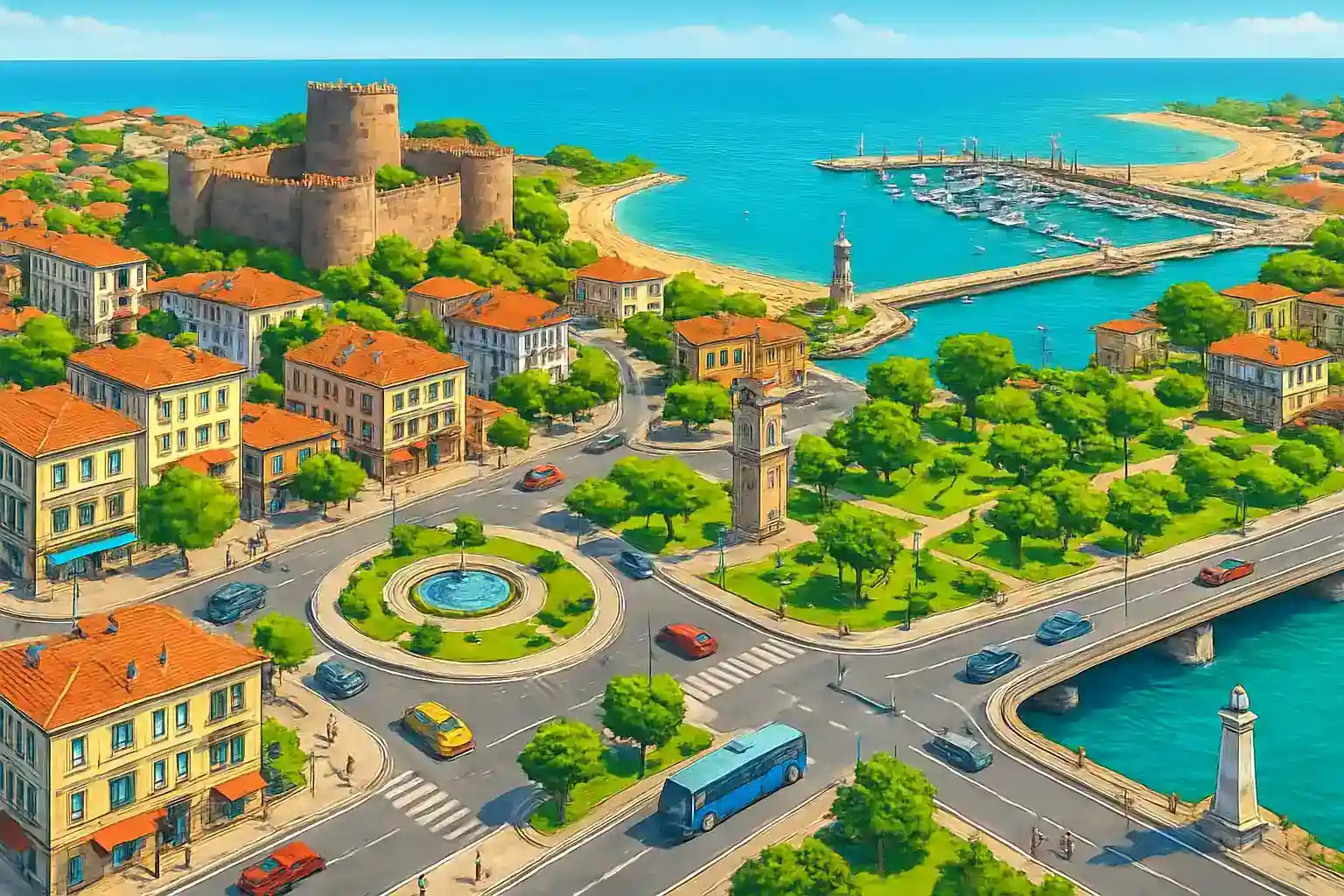 Besök Silivri-fästningen och det historiska tornet nära hamnen – ett förbisett kulturarv nära Istanbul. Undvik att köra mot Istanbul under rusningstid (07–10 och 17–20) för att spara tid. Hur långt är det från Silivri till Istanbul centrum?