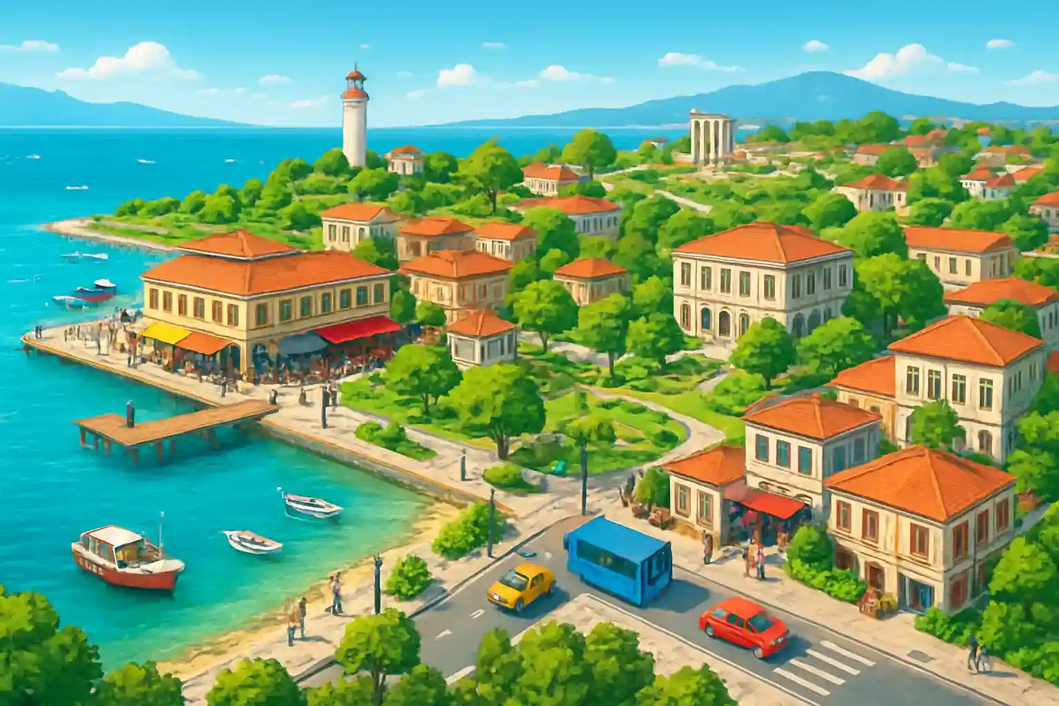 Finns det parkeringsmöjligheter i Urla centrum? Ja, det finns offentliga parkeringsplatser nära torget och längs hamnpromenaden, de flesta avgiftsfria eller med låg avgift.