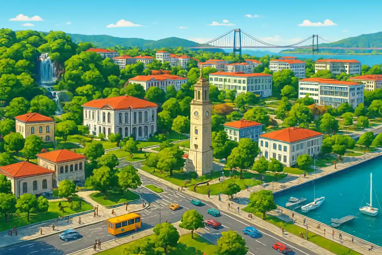 Yalova är känt för sina termalkällor i Termal-distriktet, 12 km söderut, som lockat besökare sedan osmansk tid. Staden fungerar som inkörsport till Bursa (65 km söderut) och är ett populärt utflyktsmål för Istanbulbor tack vare snabbfärjeförbindelsen från Yenikapı. Kör 12 km till Termal och upplev de historiska badhusen mitt i grön skog – bäst på vardagar för att undvika helgrusning från Istanbul.