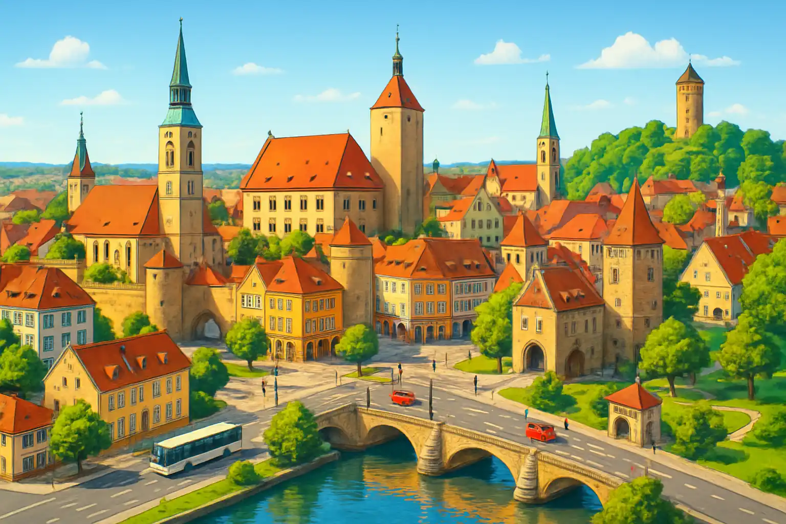 Hyr bil i Amberg centrum i Oberpfalz, Bayern, med 4 uthyrare och utmärkt tillgänglighet. Amberg är en välbevarad medeltida stad omgiven av sin historiska stadsmur och ligger cirka 60 km öster om Nürnberg. Med hyrbil utforskar du enkelt Oberpfälzer Wald och omgivande kulturstäder.