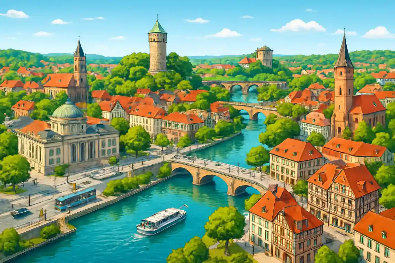 Bad Kreuznach erbjuder hela 9 uthyrare i centrum, vilket gör det till ett av de mest välförsörjda hyrbilsområdena i Rheinland-Pfalz. Kurorten vid floden Nahe är känd för sina saltgruvor och radonbad, och ligger strategiskt 45 km sydväst om Mainz. Perfekt bas för att utforska Nahe-vinregionen och Hunsrück.