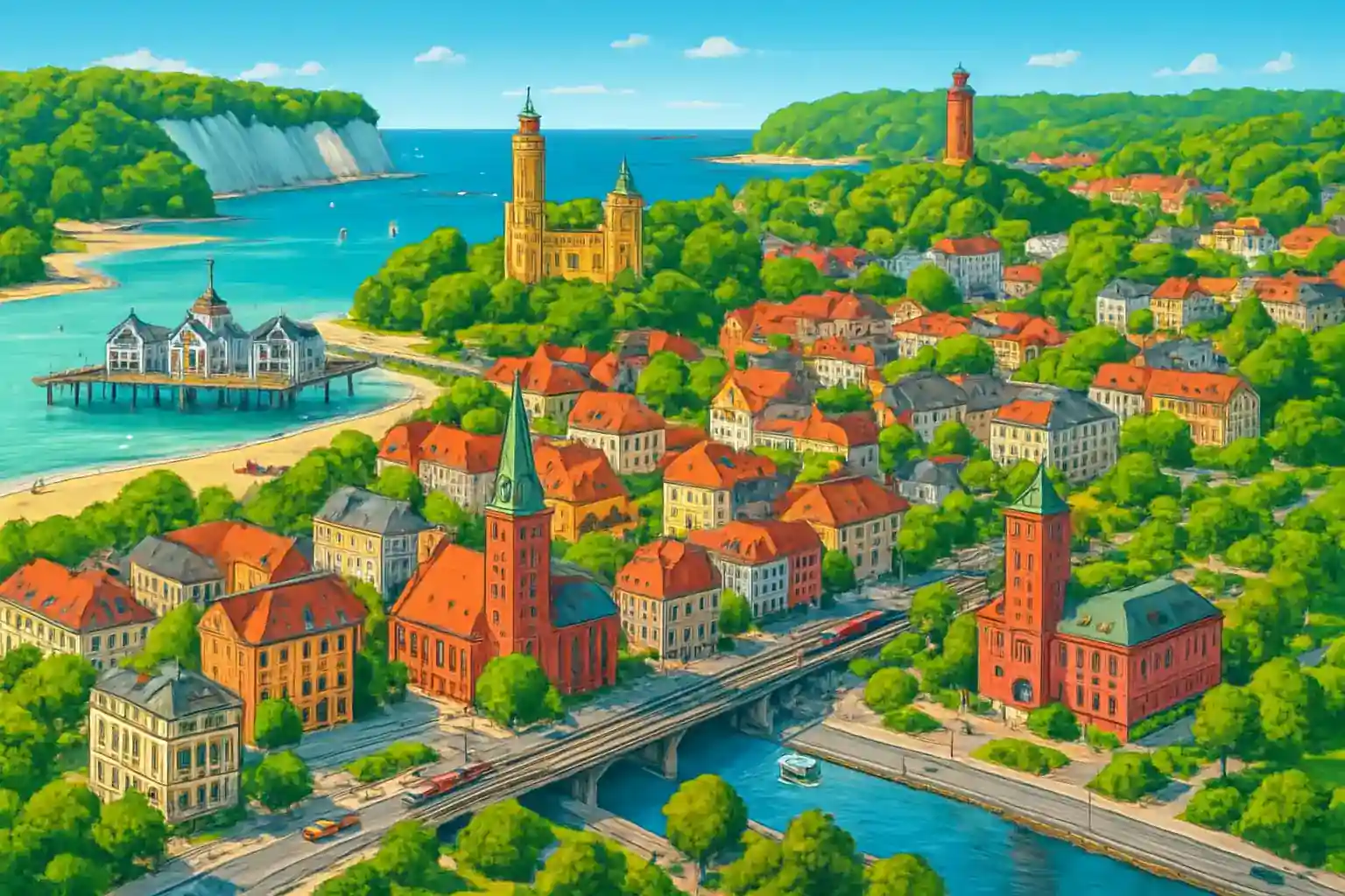 Ta en tur till Nationalpark Jasmund (ca 18 km) för att se de berömda kritklipporna Königsstuhl. Undvik att köra in till Binz under högsäsong – parkera utanför och promenera in. Hur långt är det från Bergen auf Rügen till Stralsund?