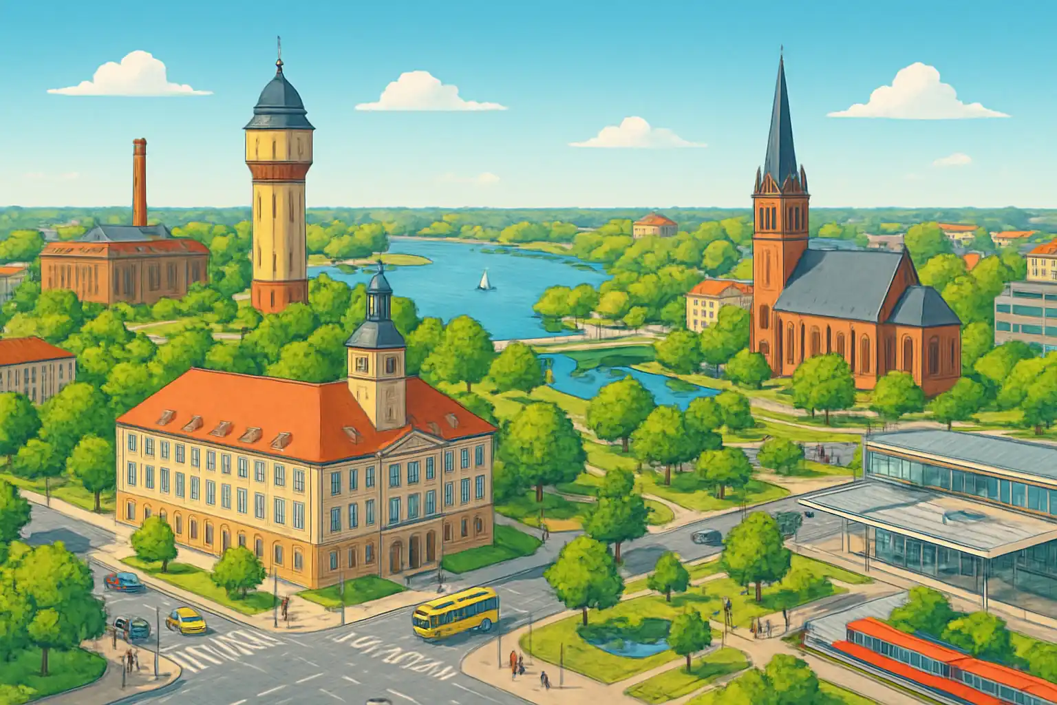 Hyr bil i Bitterfeld centrum med 2 uthyrare och utforska denna stad i Sachsen-Anhalt som genomgått en remarkabel förvandling från industristad till naturparadis. Goitzsche-sjön, skapad ur ett gammalt kolgruveområde, ligger bara 3 km från centrum. Leipzig nås på 35 km via A9, och Halle (Saale) ligger 25 km västerut.