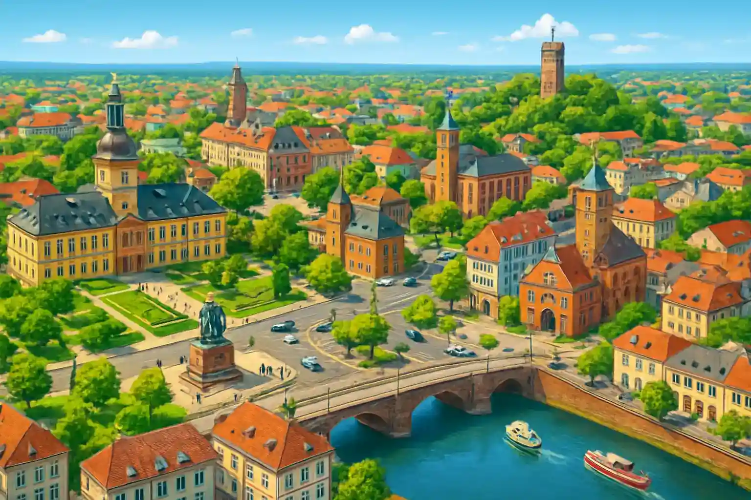 Parkera gärna vid stationen och utforska Hanaus gamla stad till fots innan du kör vidare. Undvik rusningstrafik mot Frankfurt A66 på vardagar 7–9. Hur långt är det från Hanau tågstation till Frankfurt centrum?