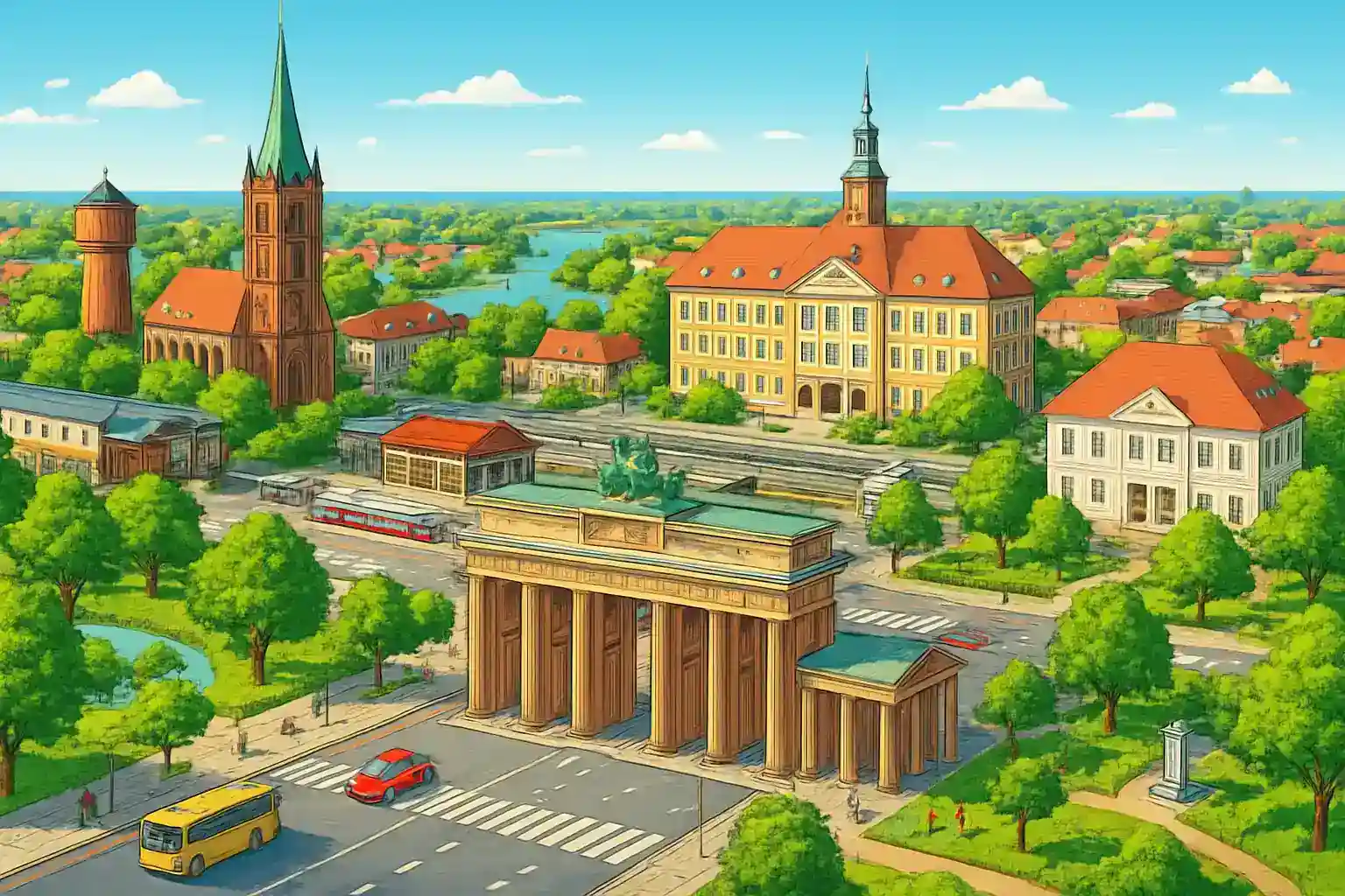 Ta A9 norrut mot Berlin och parkera vid en av stadens P+R-anläggningar för att slippa innerstadens trängselkörning. Naturparken Fläming är 40 km söderut och perfekt för en dags utflykt.