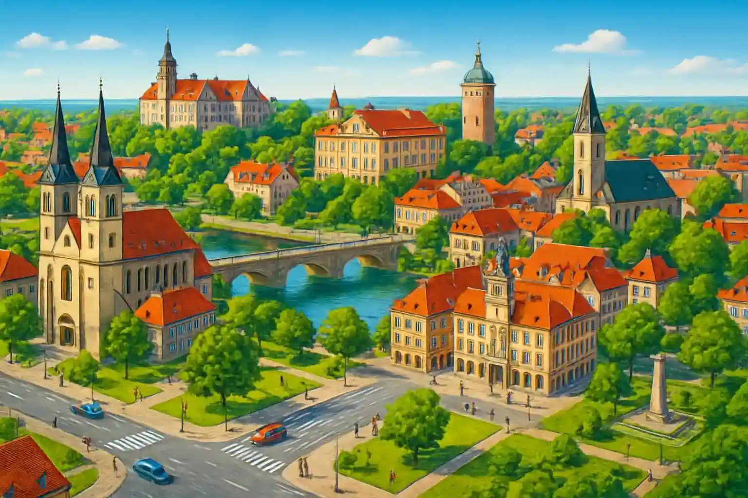 Merseburg Dom, Schloss Merseburg och Domherrenhäuser vid Domplatz är de viktigaste sevärdheterna, alla inom gångavstånd från centrum. Kan jag ta hyrbilen till Naumburg och Saale-Unstrut-regionen? Absolut, Naumburg med Naumburger Dom (UNESCO) ligger ca 30 km söderut via B91 och nås på ca 25–30 minuter.