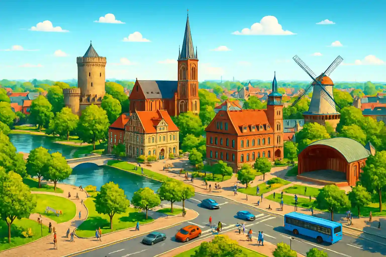 Kör längs Rheinuferstraße för en scenisk tur längs floden. Boka helgbil tidigt då Moers är populärt för weekendutflykter till Niederrhein. Parkering i centrum är avgiftsbelagd – fråga uthyraren om parkeringsalternativ.