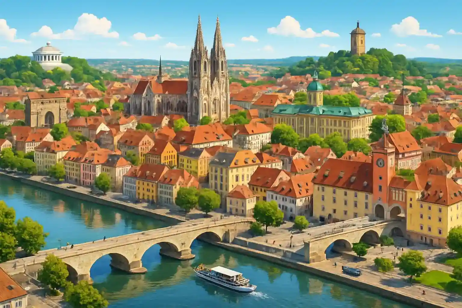 Walhalla-monumentet ligger 12 km öster om centrum vid Donaustauf – en imponerande dagsutsfly på 20 minuter. Parkera på Donaumarkt P+R och ta spårvagnen in – spar tid och undvik trängselavgifter i gamla stan. Vilka uthyrare finns i Regensburg centrum?