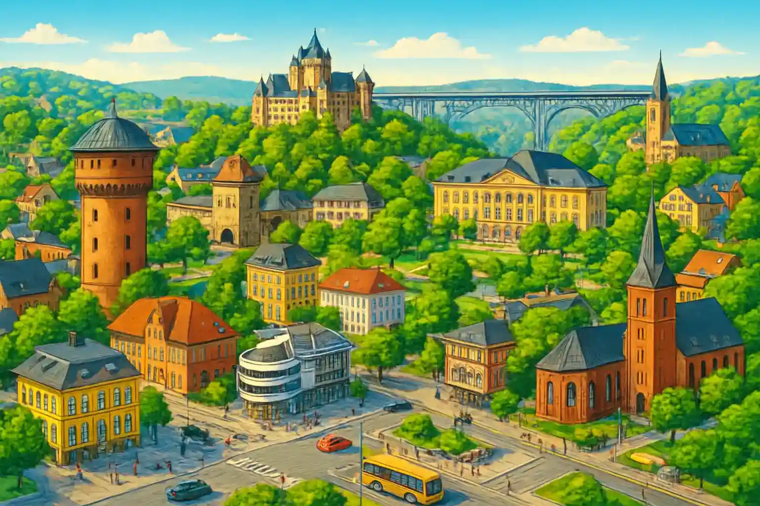 Parkering i Remscheid centrum är gratis på söndagar i de flesta parkeringshusen nära Alleestraße. Hur lång tid tar det att köra från Remscheid till Köln? Cirka 50 km via A1, normalt 40–45 minuters körning utan trafikstockning.