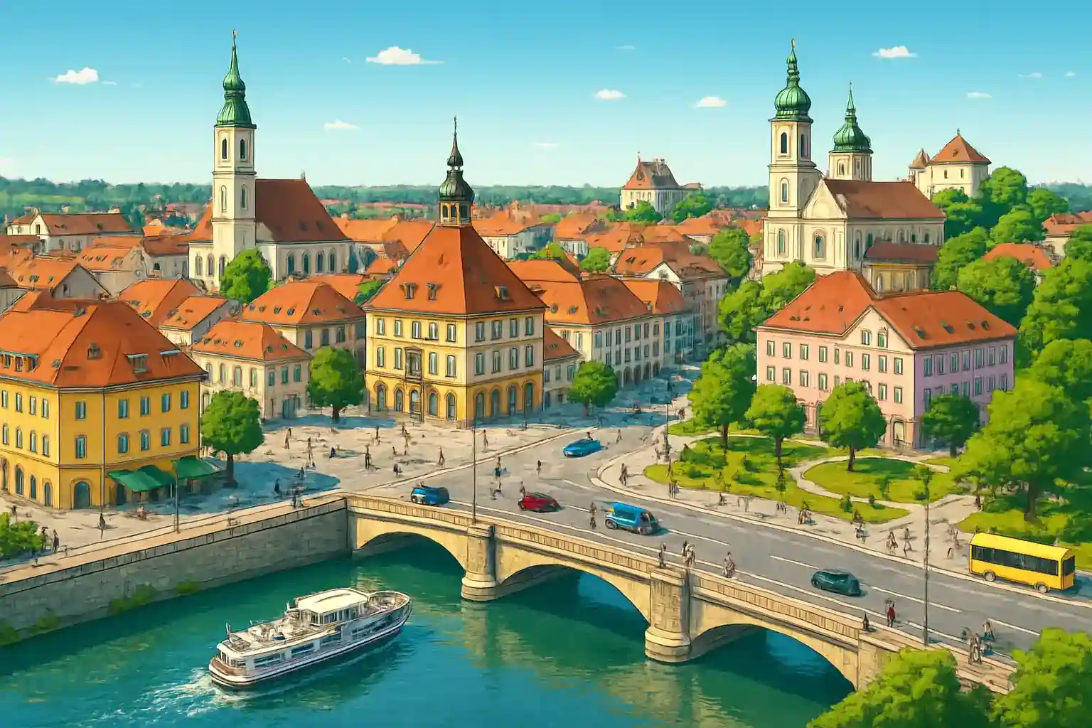 Rosenheim centrum erbjuder 8 uthyrare inom ett kompakt område, vilket gör det enkelt att hämta bil mitt i denna bayerska stad vid floden Inn. Härifrån når du Chiemsee på bara 25 km österut och Salzburg på 80 km via A8. Perfekt utgångspunkt för utflykter i Alperna och Chiemgau.