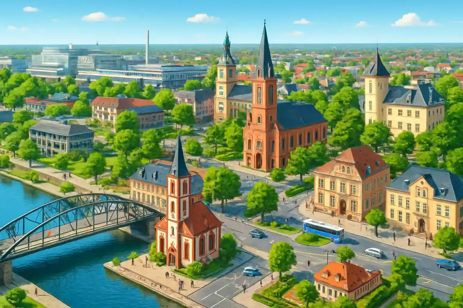 Rüsselsheim ligger vid floden Main och erbjuder en charmig Altstadt med Festung Rüsselsheim från 1400-talet. Mainz nås på 20 km västerut och Darmstadt på 25 km söderut via A67. Hyr bil i Rüsselsheim som billigare alternativ till Frankfurt – priserna är ofta lägre trots närheten till flygplatsen.