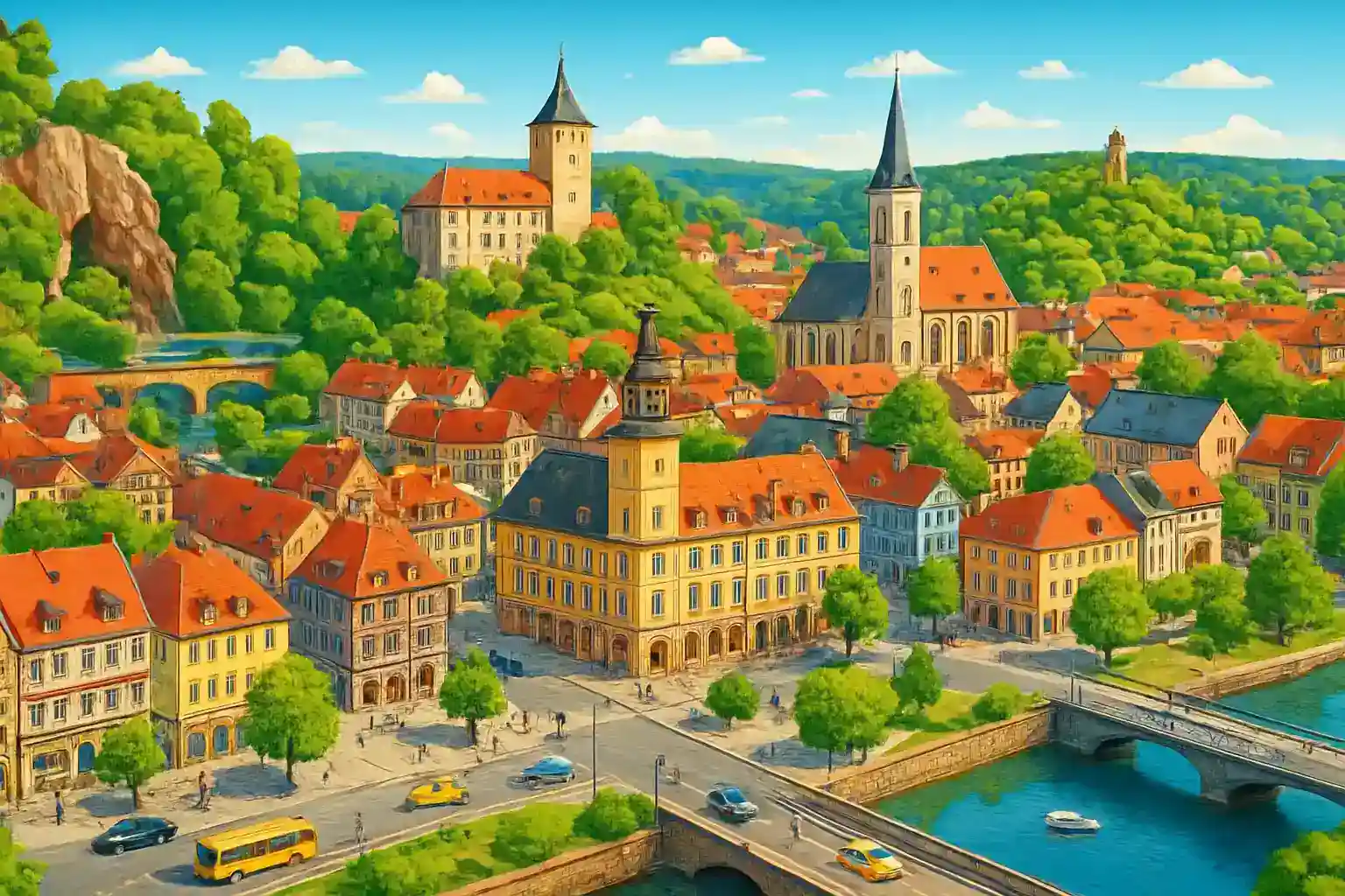 Hyr bil i Saalfeld centrum och utforska Thüringens vackra dalslandskap längs Saalefloden. Med 2 uthyrare i centrum har du tillgång till bil för att enkelt nå omgivande sevärdheter. Saalfeld ligger strategiskt i hjärtat av Thüringen, ca 35 km söder om Jena.