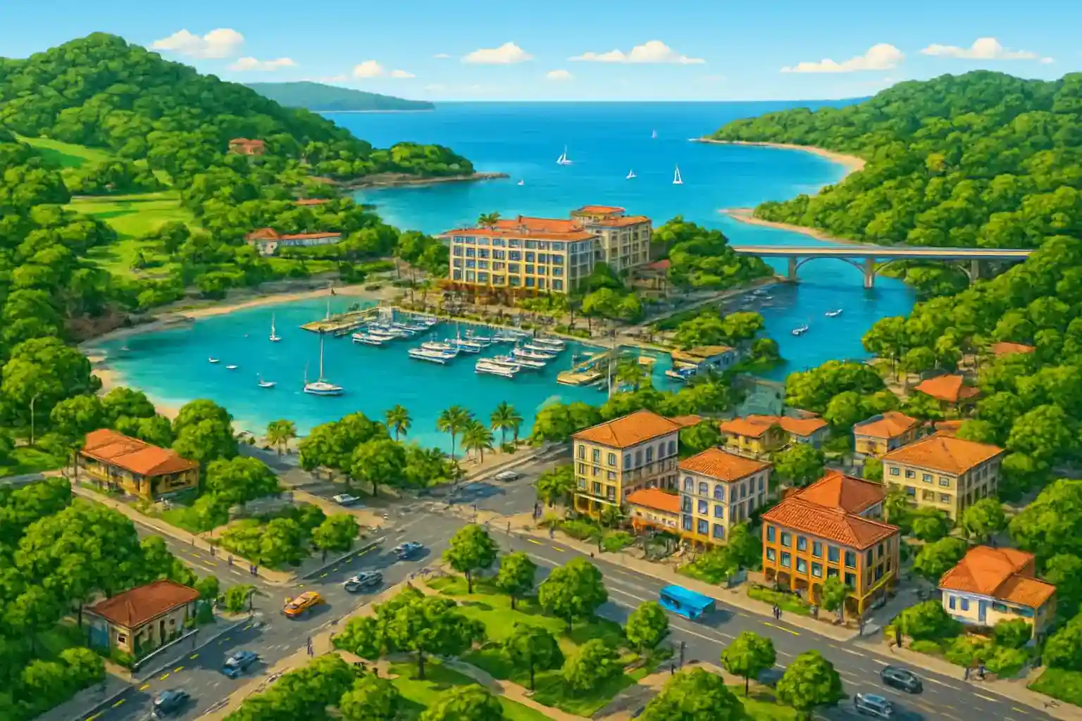 Herradura-bukten är känd för sin lugna lagun och populär för sportfiske och båtuthyrning. Jacó centrum nås på 10 minuter söderut, och Manuel Antonio nationalpark ligger ca 65 km söderut längs Costanera Sur, ungefär 1 timme och 15 minuter. Costanera Sur är välasfalteradoch scenisk – perfekt för dagsutflykter söderut mot Quepos och Manuel Antonio.