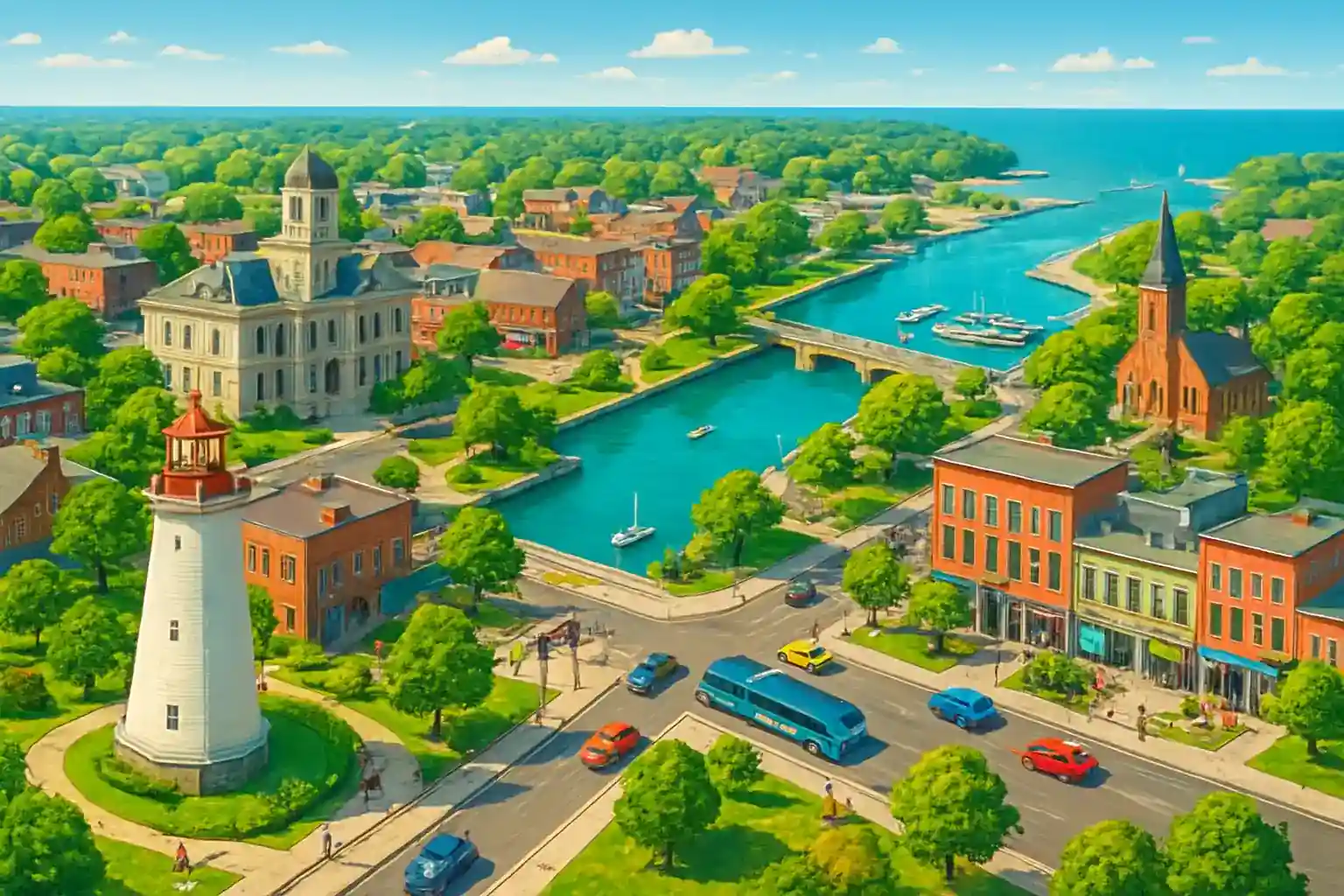 Goderich, känd som 'Kanadas vackraste stad', ligger vid Lake Hurons strand i Ontario, ca 150 km nordväst om London. Med en uthyrare i centrum får du enkel tillgång till bil för att utforska kuststräckan och omgivningarna. Stadens unika åttakantiga torg är hjärtat i Goderich, omgivet av butiker och restauranger.