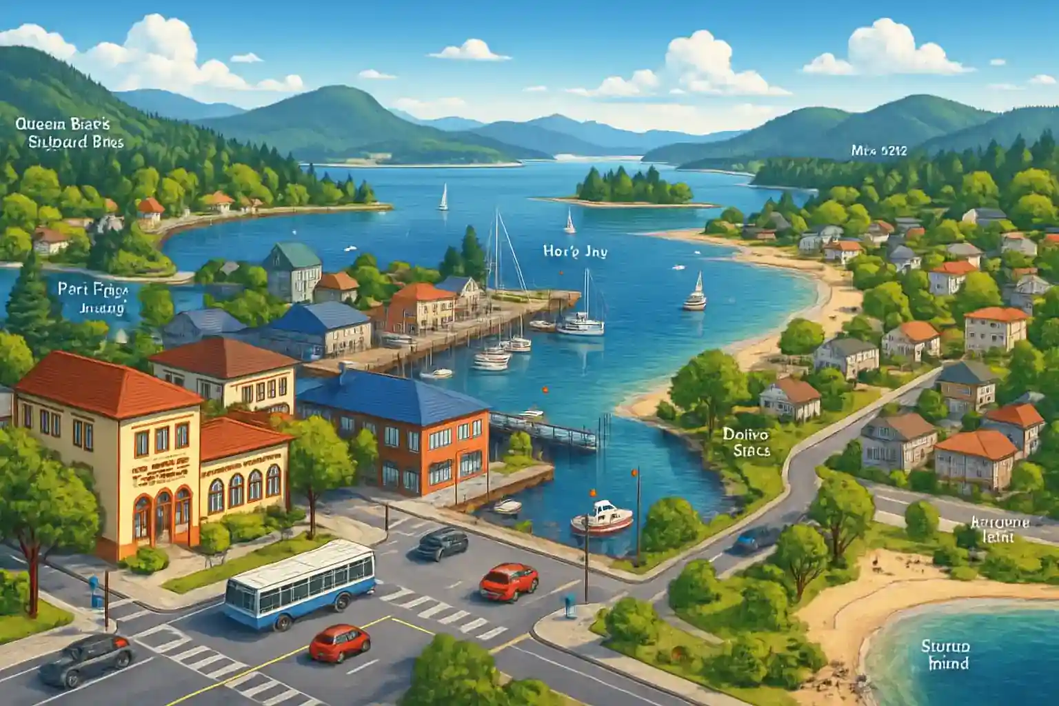Färjeterminalen i Port Hardy, bara 5 minuter från flygplatsen, trafikeras av BC Ferries mot Prince Rupert och Discovery Coast. Boka hyrbil i god tid eftersom utbudet är begränsat med bara 2 uthyrare och efterfrågan är hög under sommaren. Fyll tanken i Port Hardy innan du ger dig ut på långa turer – bensinstationer är sällsynta norrut.