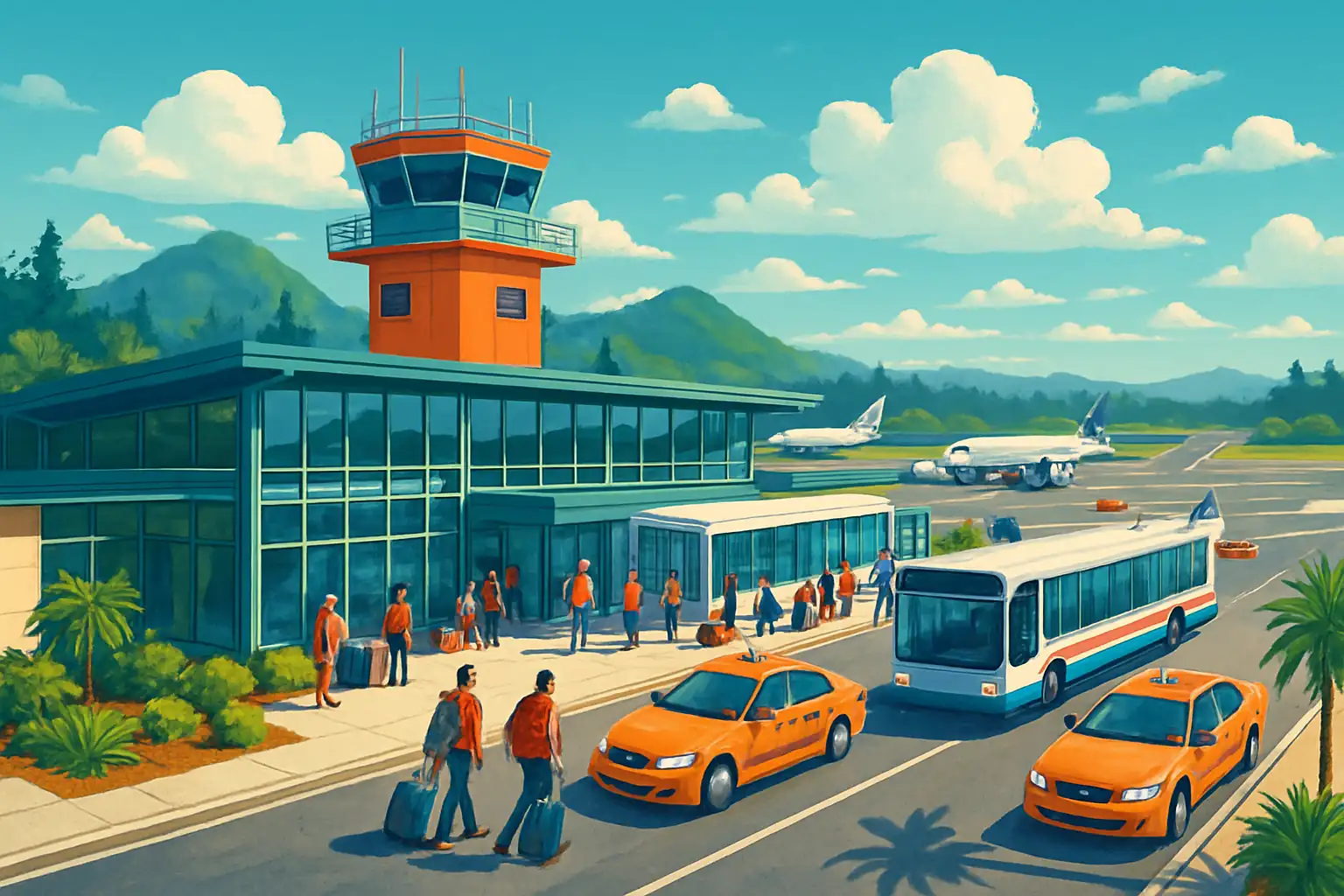 Från flygplatsen når du Tofino centrum på ca 8 minuter och Ucluelet på ca 40 minuter söderut längs Pacific Rim Highway. Boka hyrbil månader i förväg under sommarsäsongen (juni–september) – med bara 1 uthyrare tar fordon slut snabbt. Kör ut till Long Beach i Pacific Rim National Park (ca 10 km söderut) för solnedgångar och surfing.