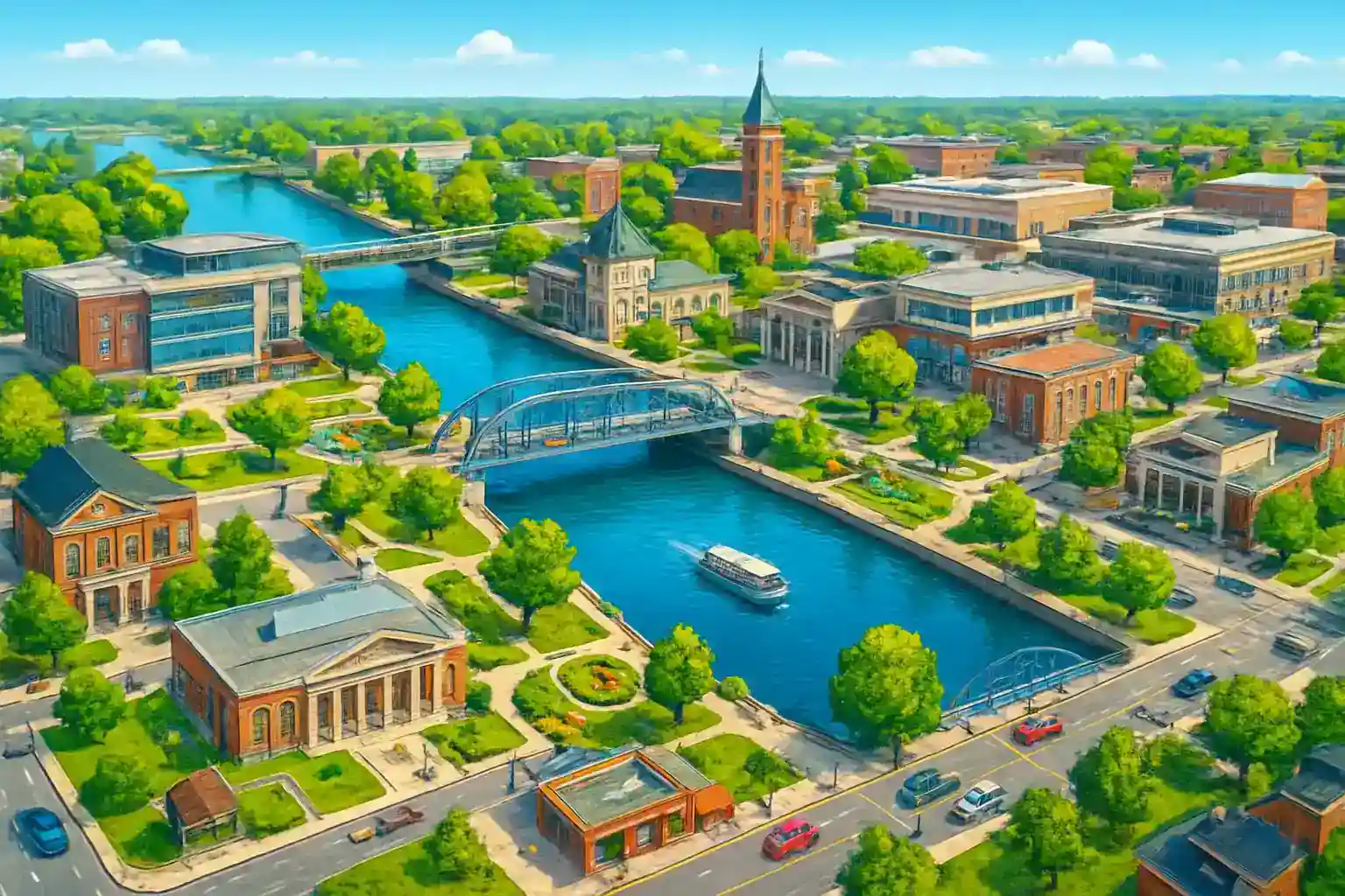 Welland är en industristad i Niagara-regionen, Ontario, känd för Welland Canal som förbinder Lake Erie med Lake Ontario och möjliggör passage förbi Niagarafallen. Med 1 uthyrare i centrum är utbudet begränsat, men läget är strategiskt för att utforska Niagara-halvön. Niagara Falls ligger bara 20 km nordost och St.