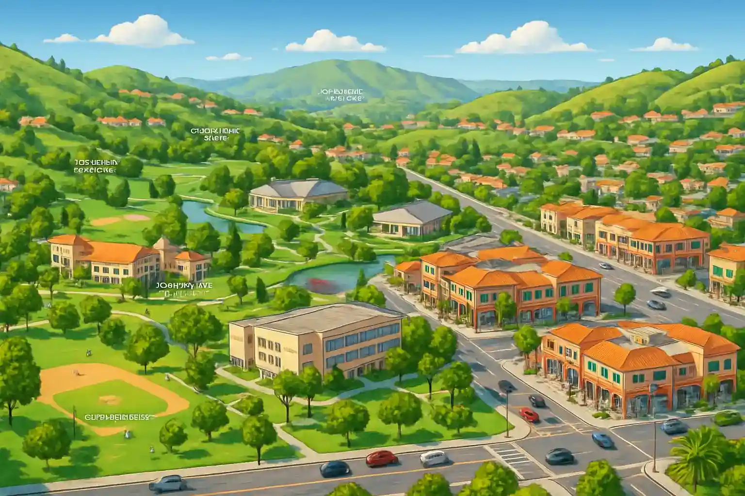 Diamond Bar är en välmående förort omgiven av kullarna i Puente Hills, med Sycamore Canyon Park som ett populärt friluftsområde. The Shoppes at Chino Hills ligger ca 15 minuter söderut och erbjuder shopping och restauranger. Cal Poly Pomona-universitetet gränsar till stadens västra delar.
