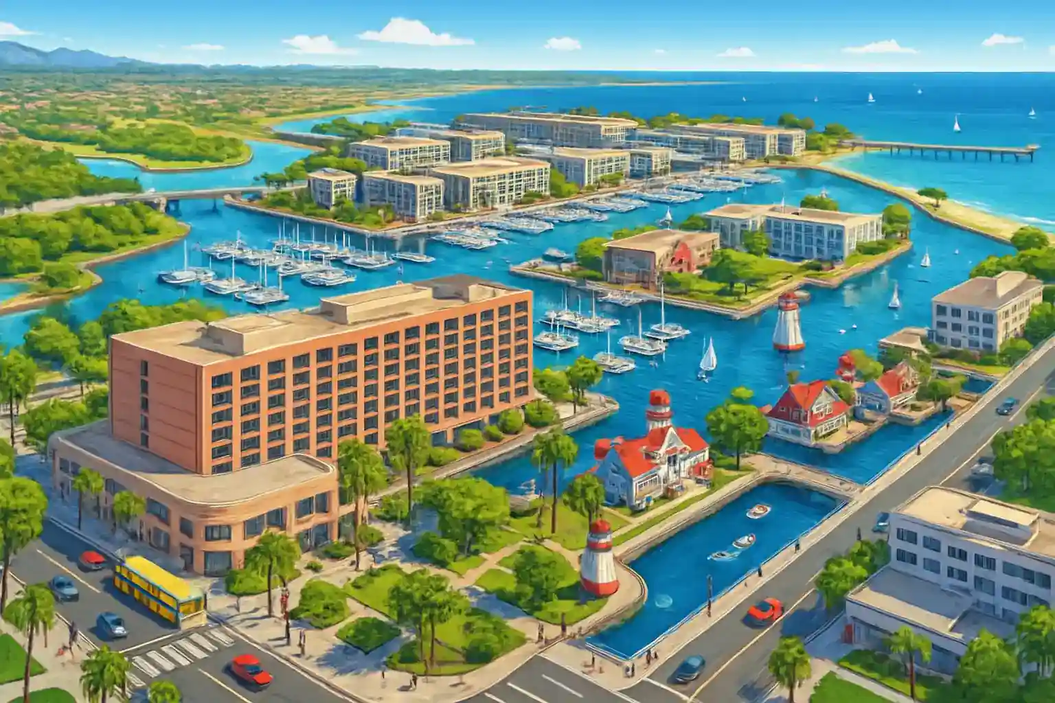Marina del Rey centrum omges av restauranger längs Admiralty Way och lyxiga marinor med hundratals båtar. Ballona Wetlands – ett av LA:s sista kvarvarande våtmarksområden – gränsar till området österut. Playa Vista med tech-företag och Playa del Rey med lugna stränder ligger direkt i närheten.