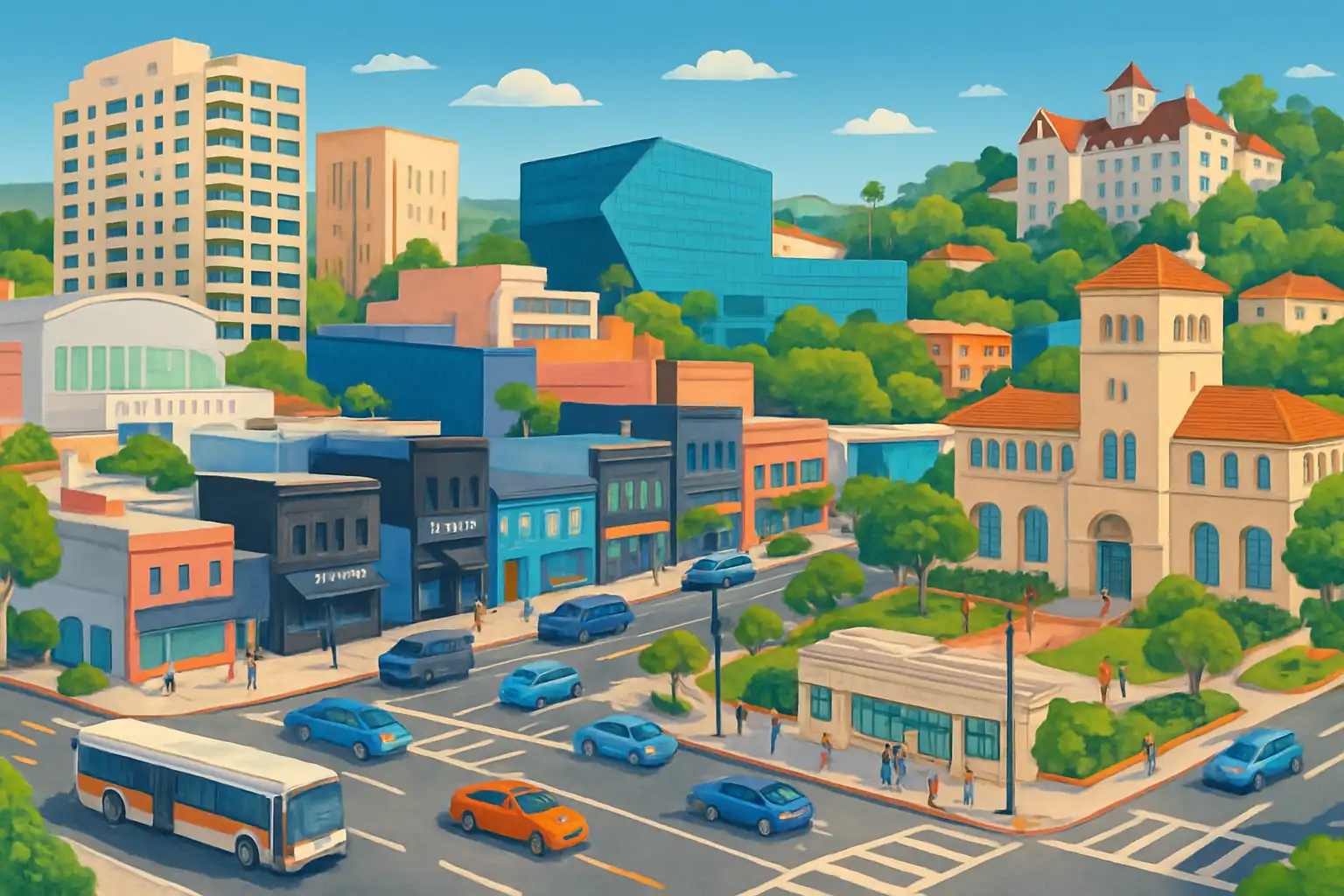 Parkering i WeHo kan vara dyrt och begränsat – välj en hyrbil med liten storlek för enklare manövrering i trafiken. Pacific Coast Highway (PCH) nås på 20 minuter västerut via Sunset Boulevard mot havet. Kör till Griffith Observatory, bara 8 km österut, för en av LA:s bästa utsiktspunkter – gratis inträde.