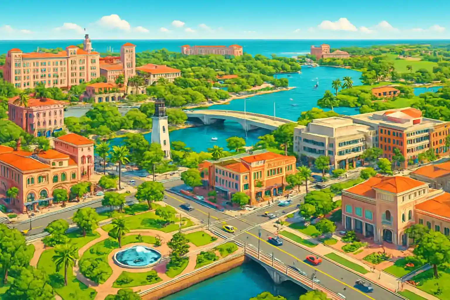 Kontoret ligger ca 3 km från Boca Raton Beach, vilket innebär ca 5–10 minuters körning. Kan jag köra från Boca Raton Öst till Palm Beach? Ja, Palm Beach ligger ca 45 km norrut och tar ungefär 40 minuter via I-95 eller den sceniska A1A.