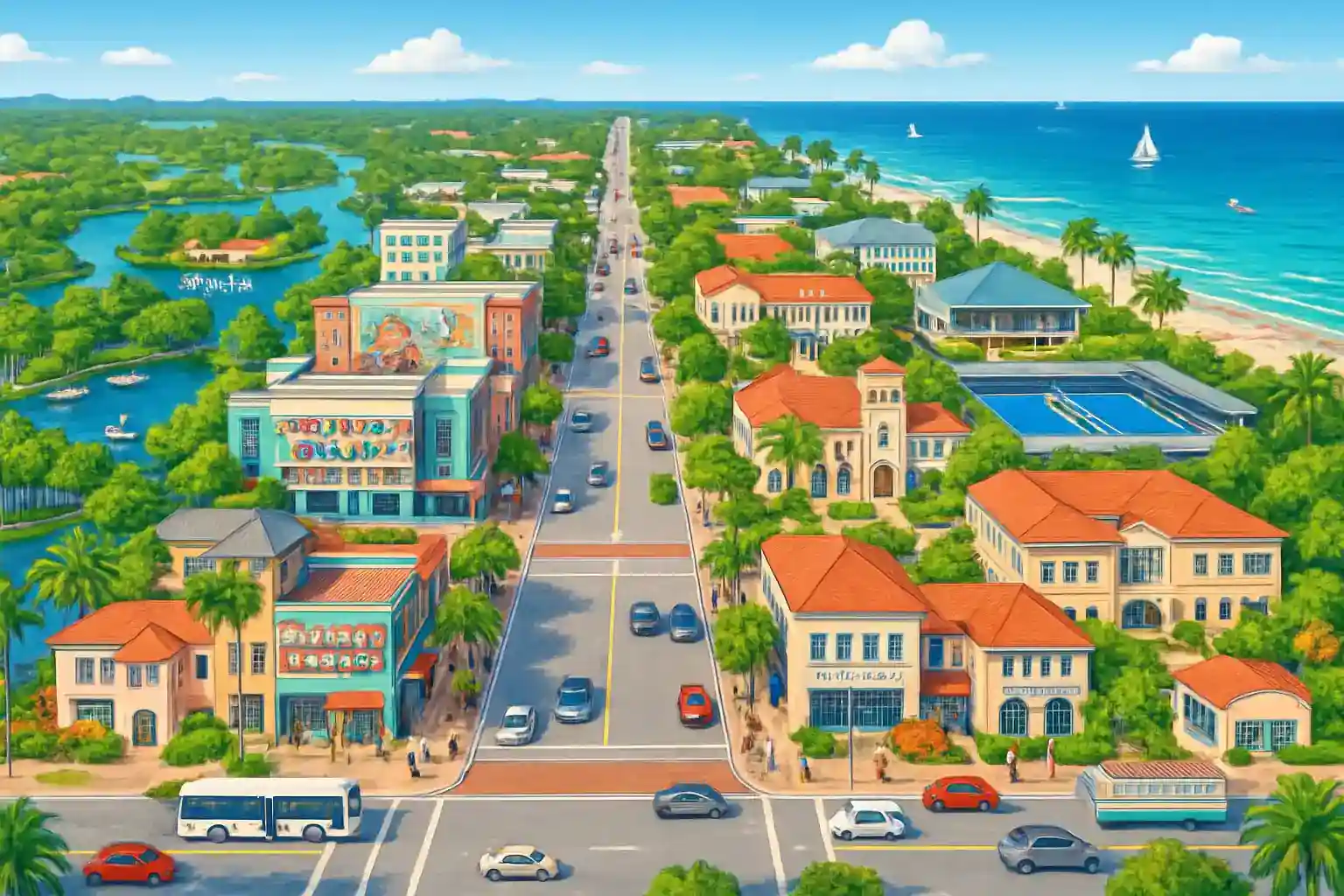 Ja, Miami Beach ligger 90 km söderut och nås på ungefär 1,5 timme via I-95, perfekt för en dagsutflykt. Finns det strandparkering nära centrum i Delray Beach? Ja, det finns kommunal parkering vid stranden men den fylls snabbt under helger – parkera i centrum och gå de 1,5 km till havet.