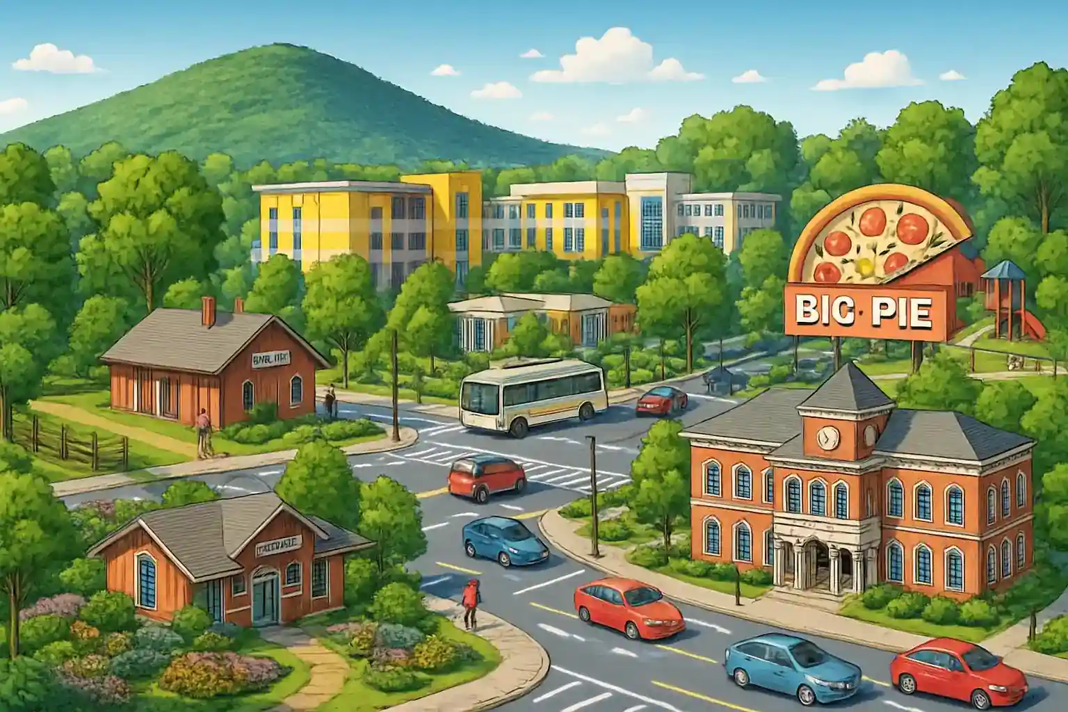 Området omges av välskötta bostadskvarter och är populärt bland barnfamiljer och pendlare. Barrett Parkway norrut leder dig till Town Center at Cobb Mall (ca 5 km) – ett av Georgias största köpcentrum. Kör Cobb Parkway söderut mot Marietta Square på ca 15 minuter för antikaffärer och lokala restauranger.