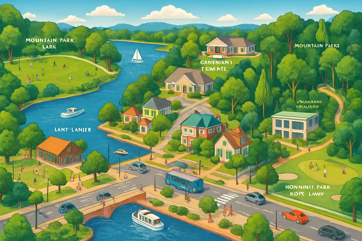 Stone Mountain Park, ett av Georgias mest besökta turistmål, ligger bara 10 km österut och nås på 12 minuter. Mountain Park är omgivet av sjöar och grönområden som är typiska för Gwinnett County. Buford Highway med sina mångkulturella restauranger och butiker finns 15 km söderut.
