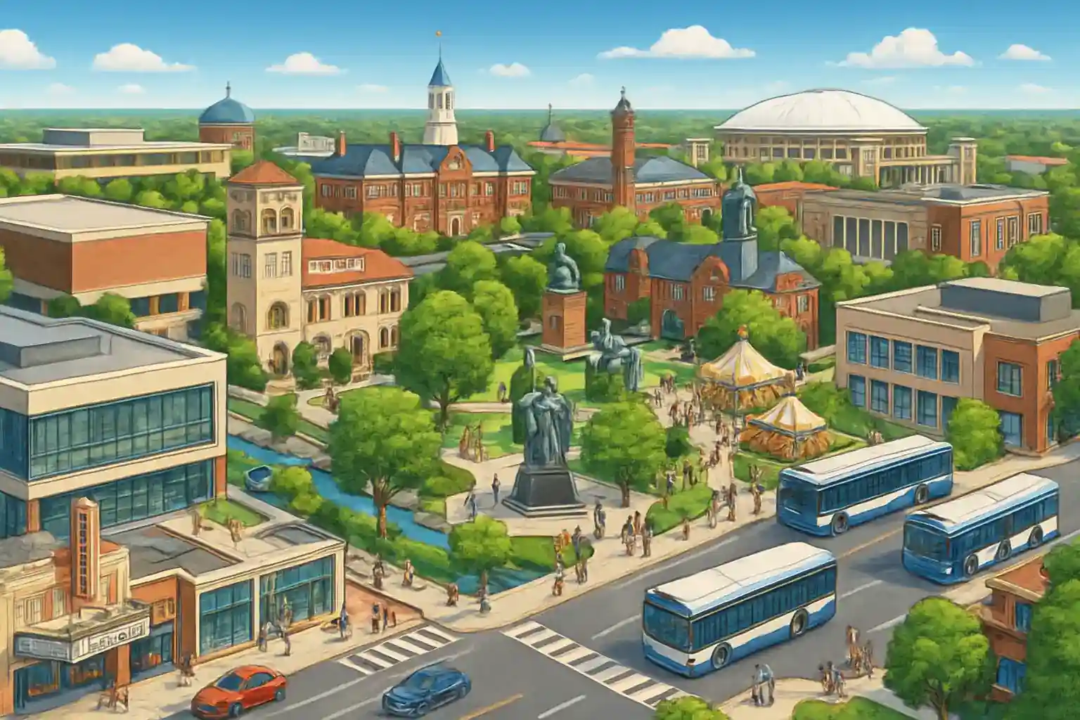 Parkera vid Champaign centrum och promenera till Krannert Art Museum på campus – gratis inträde. Kör norrut på I-57 mot Chicago, ett perfekt raksträcka för en roadtrip på ca 2,5 timmar. Undvik att hyra bil under hemmamatcher för Fighting Illini – parkeringen fylls snabbt och priserna stiger.