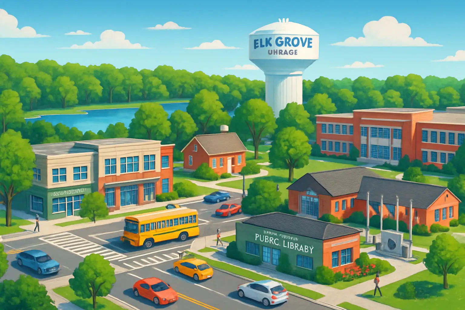 Elk Grove Village är hem till ett av USA:s största industriella affärsparker, Elk Grove Industrial Park, med tusentals företag. Centrums Biesterfield Road-korridor erbjuder restauranger och service, och Busse Woods Forest Preserve med sina älgar nås på 5 minuters körning. Hyr bil här istället för på O'Hare för att potentiellt spara 20–40% – ta en taxi eller Uber de 8 km till uthyraren.
