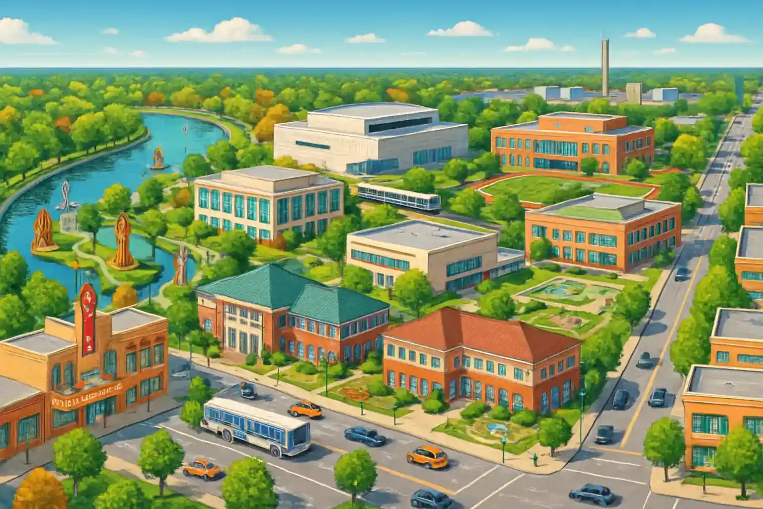 Evanston och Northwestern University ligger 5 km söderut längs Dempster Street. CTA Yellow Line (Skokie Swift) kopplar Skokie till Howard-stationen på Red Line på 10 minuter. Undvik Dempster Street under rusningstid – välj istället Golf Road eller Oakton Street för smidigare körning österut mot Lake Michigan.