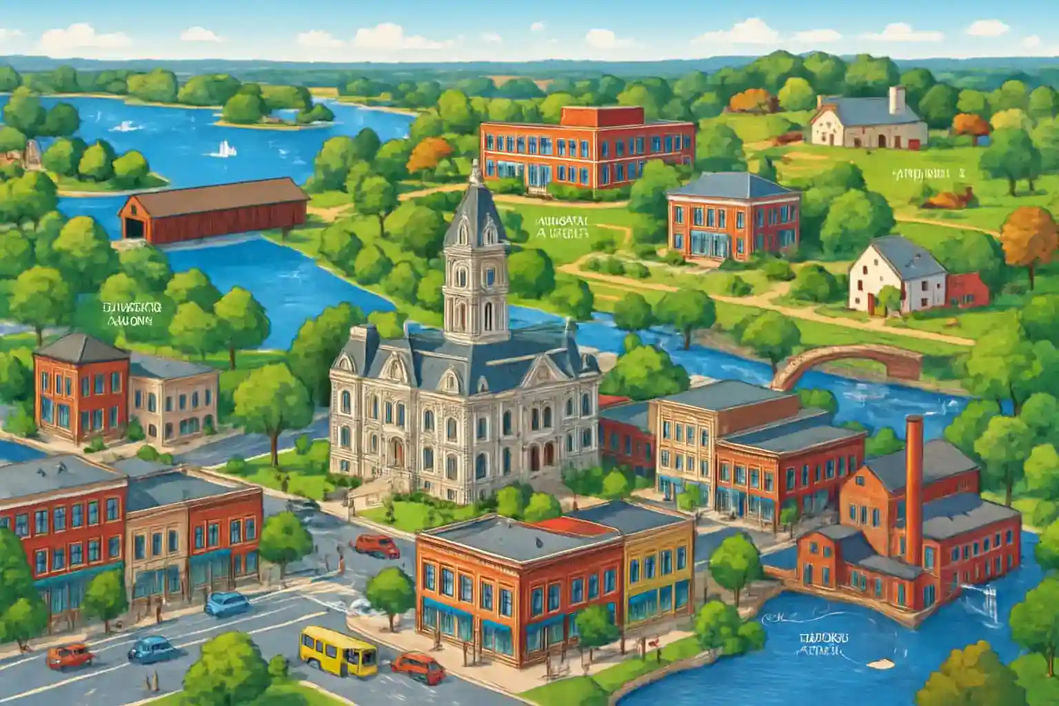 Noblesville centrum kring Courthouse Square erbjuder charmerande butiker och restauranger längs 8th Street. Morse Reservoir, ett populärt rekreationsområde, ligger bara 5 km norr om centrum och nås enkelt med bil. Under konsertsäsongen på Ruoff Music Center (maj–september) är biluthyrning populär – boka tidigt.